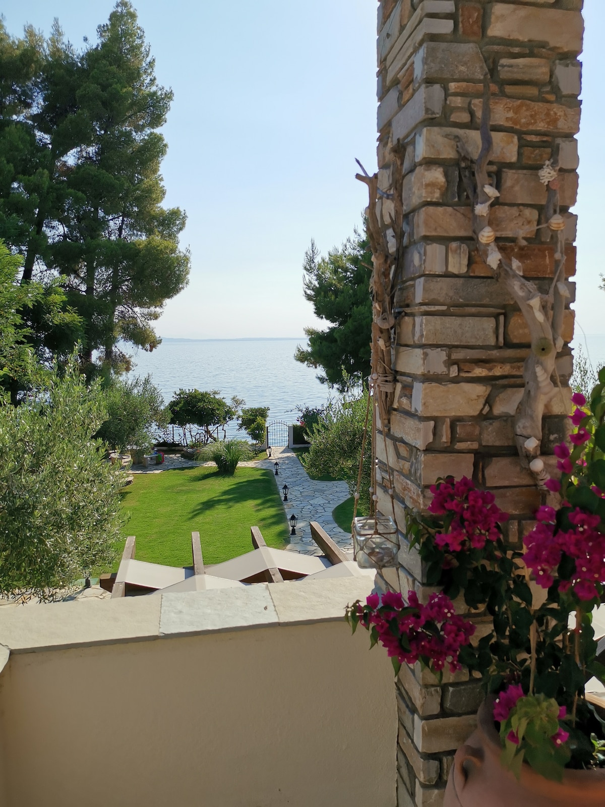 Te despiertas, el sol se levanta detrás del monte Athos. Disfrutas de una taza de café, mientras los delfines saltan en el horizonte. Caminas hasta la playa y lo único que puedes escuchar es el mar. Cocinas al aire libre y observas a los barcos que pasan y a las gaviotas persiguiendo a los peces. Ahora, es el momento de los dibujos y los juegos de mesa. Finalmente, tienes una copa de vino, esperando que la luna se levante detrás de las colinas.