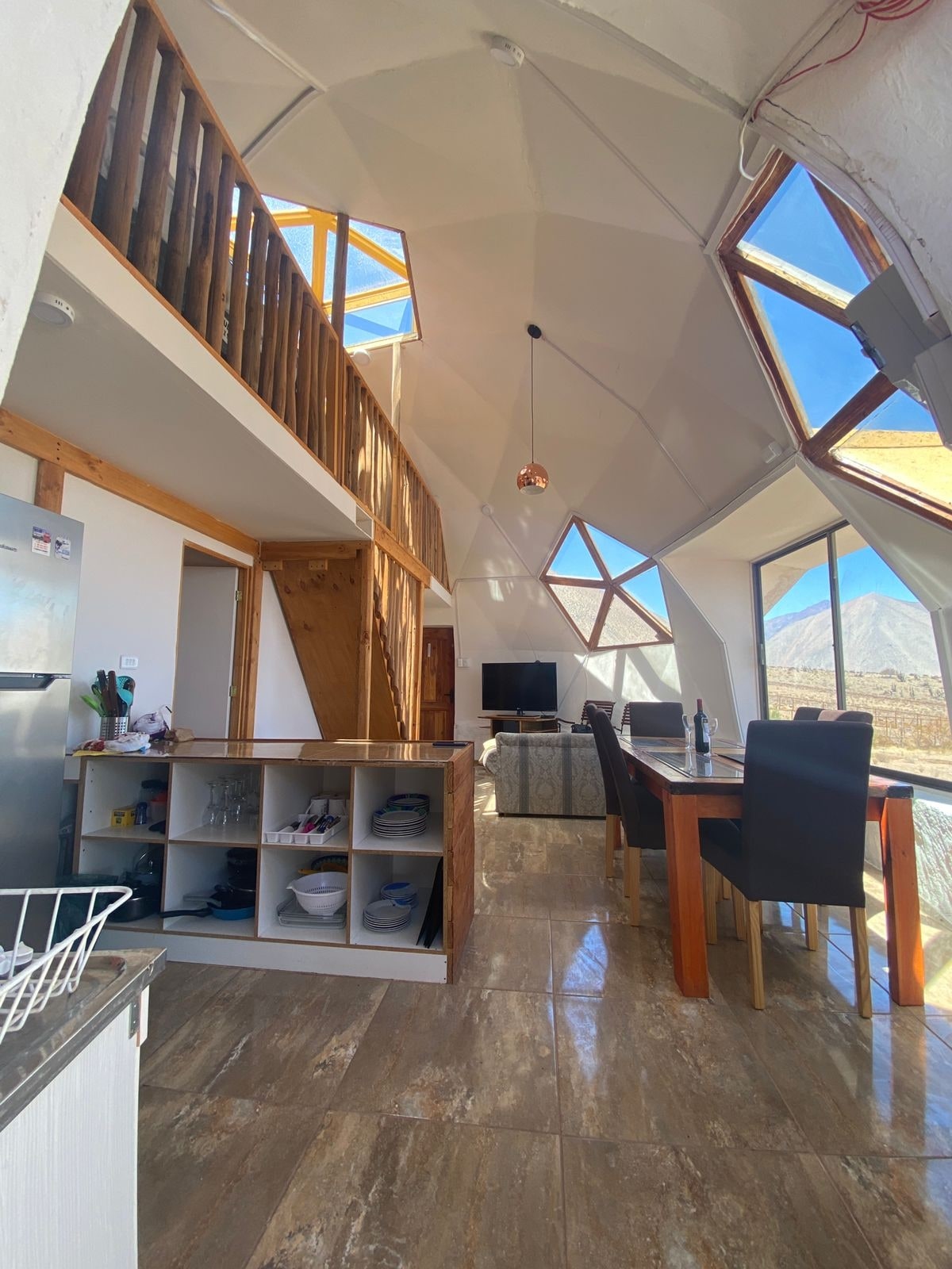 Casa Domo Mamalluca , esta ubicada en las montañas de Cerro Mamalluca a unos 15 minutos de Vicuña .Vive esta experiencia desconectandote de la rutina y disfrutando en este hermoso paisaje de los cielos mas limpios donde podras disfrutar del cosmos y el silencio . NOTA : NO CONTAMOS CON SEÑAL WIFI , solo señal de moviles personales de todas las compañias . Y nuestra Energía es Solar la cual se de cuidar en el uso para no tener inconvenientes.