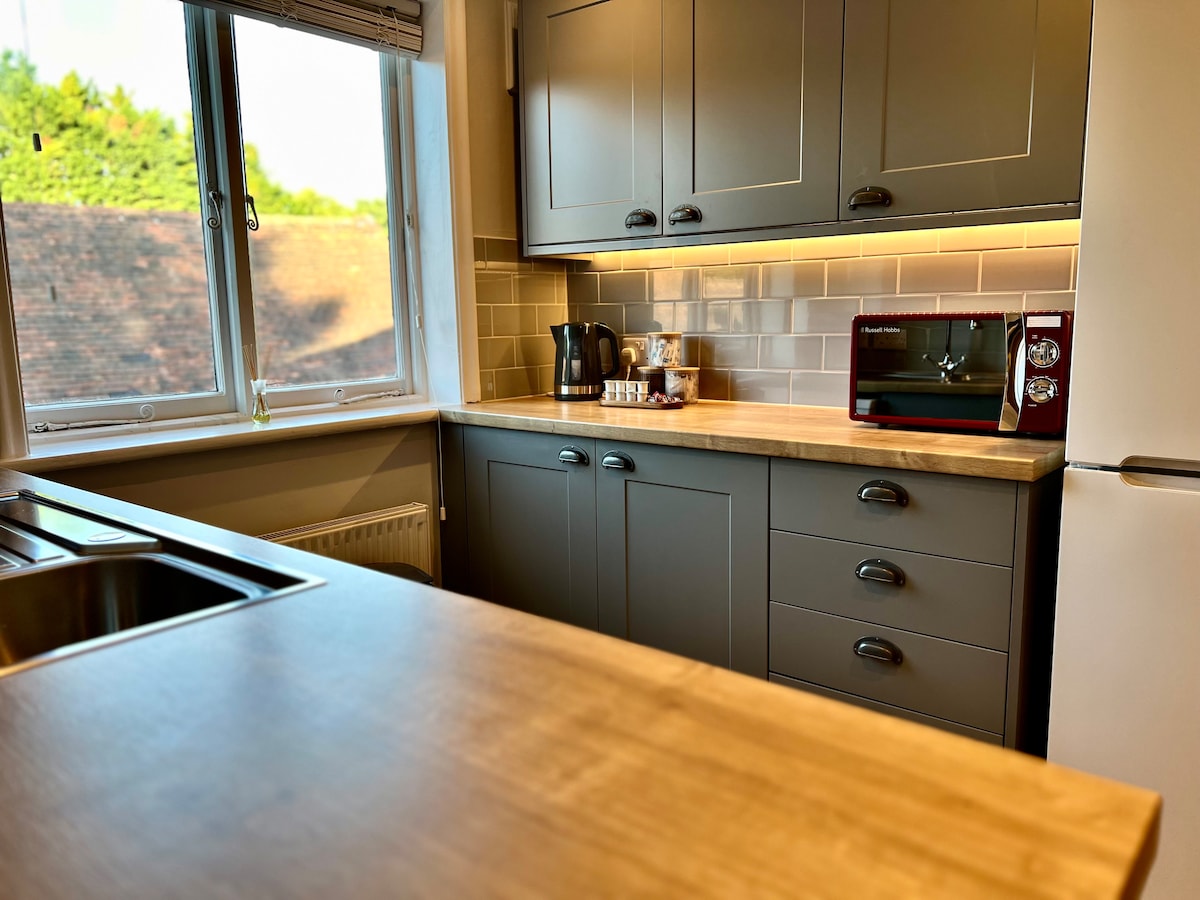 Este apartamento independiente tiene su propia entrada privada y todo lo que necesitas para una estadía cómoda. En el interior, encontrarás una cocina de planta abierta, comedor y sala de estar, un dormitorio doble con armarios empotrados y un moderno baño con ducha separado. La cocina está totalmente equipada con nevera, cocina, microondas, tostadora, hervidor y lavadora. Disfruta de tu café de la mañana en el pequeño patio con vistas al jardín. Estacionamiento fuera de la calle disponible, y proporcionamos todos los elementos esenciales, ¡solo tienes que traerte a ti mismo!