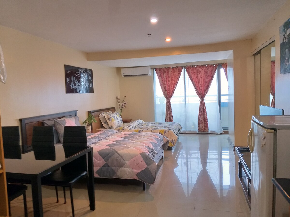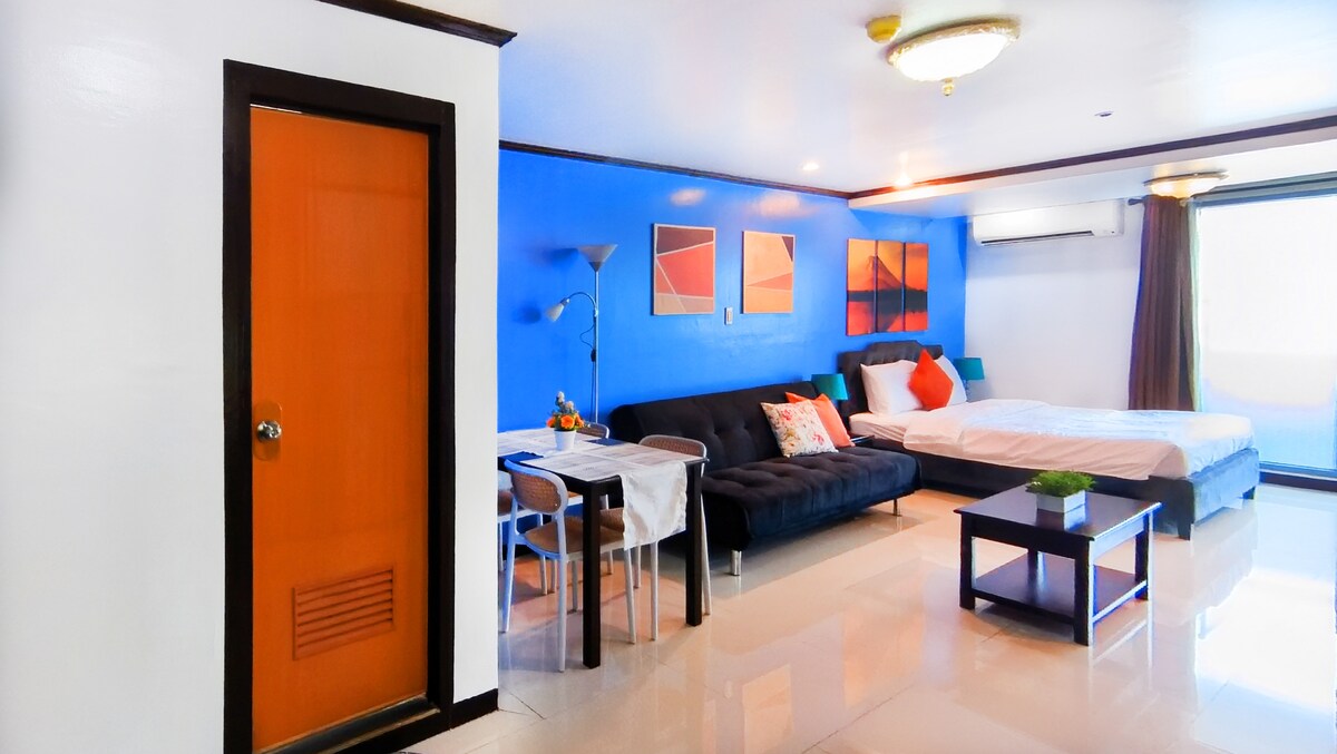 Looking for a budget-friendly staycation in the city of Manila? Then say no more. This comfiest studio is in Grand Riviera Suites Manila, situated in front of the US Embassy and the famous Dolomite beach. You can relax and enjoy your stay by taking a swim, or even working out the fats in the gym from the delicious meals which can be found within the vicinity. St. Luke's Medical Center Extension Clinic and malls, such as Robinson's Manila are also around the corner.