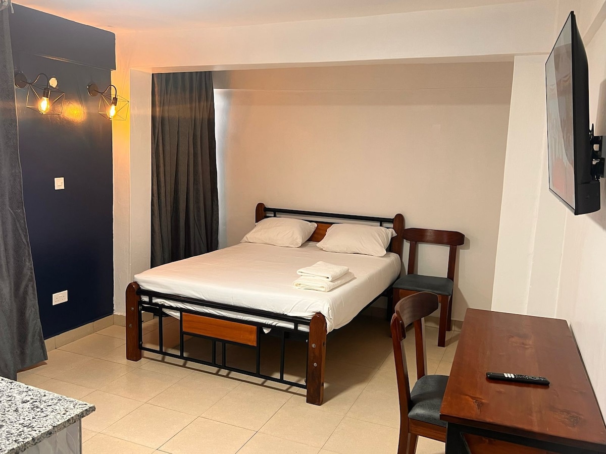 Acogedor apartamento de 1 dormitorio | Cerca de Embu Town y KSG ¡Bienvenido a tu hogar lejos de casa en Embu! Este encantador apartamento de un dormitorio está a solo 10 minutos en auto de la ciudad de Embu y a 3 km del KSG. Java Blue está a pocos pasos para una noche relajada, y el Marvel Hotel está cerca si estás de humor para una deliciosa cena. Las comodidades incluyen: #Habitación cómoda #Cocina totalmente equipada. #Buena conexión wifi #Estacionamiento seguro #Entorno sereno