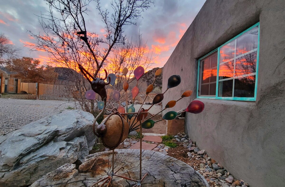 Experience the splendor of the New Mexico countryside during your stay in our beautiful adobe casita. Located on a historic property, 35 minutes North of Santa Fe, in the village of Chimayo. The casita features hand plastered mud walls, soaring ceilings, luxury linens, large picture windows & private decks, in-room coffee maker, small fridge & microwave. Start your day with coffee next to the bubbling pond and end your adventures with a cocktail, taking in an epic sunset in the apple orchard.