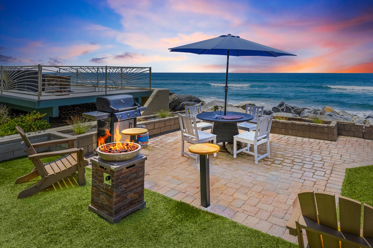 Casa adosada grande de 3 pisos. Acceso a la playa en primera fila con vistas al mar sin obstáculos desde la sala de estar, la cocina y el balcón. 2 dormitorios principales y un dormitorio adicional: incluye 2 camas tamaño king, un sofá cama tamaño queen y una cama nido doble. Cocina totalmente equipada, nuevo piso de madera, patio trasero privado, barbacoa, estacionamiento cerrado en garaje, entrada principal privada. 2 baños completos renovados con duchas a ras de suelo. A menos de 10 minutos a pie de Carlsbad Village. Bicicletas, tablas de boogie, sillas, sombrilla y juguetes: ¡todo lo que necesitas para un día de playa divertido!