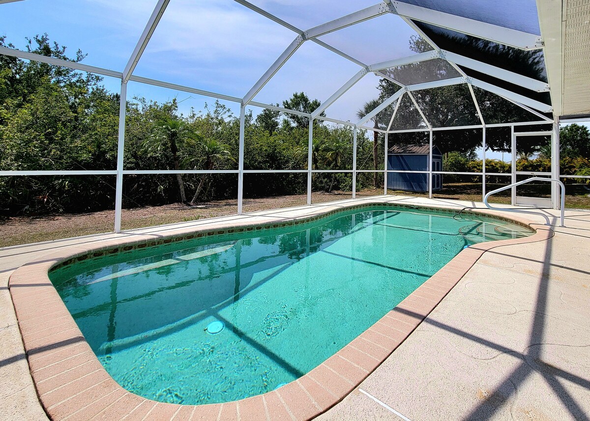 ¡Te damos la bienvenida al Aqua Oasis! Esta casa fue construida en 2020 y se encuentra a solo 6 millas de múltiples playas en la soleada Englewood, FL. La casa consta de 3 dormitorios y 2 baños completos, una opción para calentar la piscina al aire libre, relajantes sillas al aire libre alrededor de un fogón de gas, vallado en el patio trasero para dejar que tus mascotas deambulen y una parrilla de gas para preparar tus comidas favoritas. Si tu familia desea su propio espacio privado y piscina privada, pero quieres estar cerca de las playas locales, ¡ESTO ES PARA TI!
