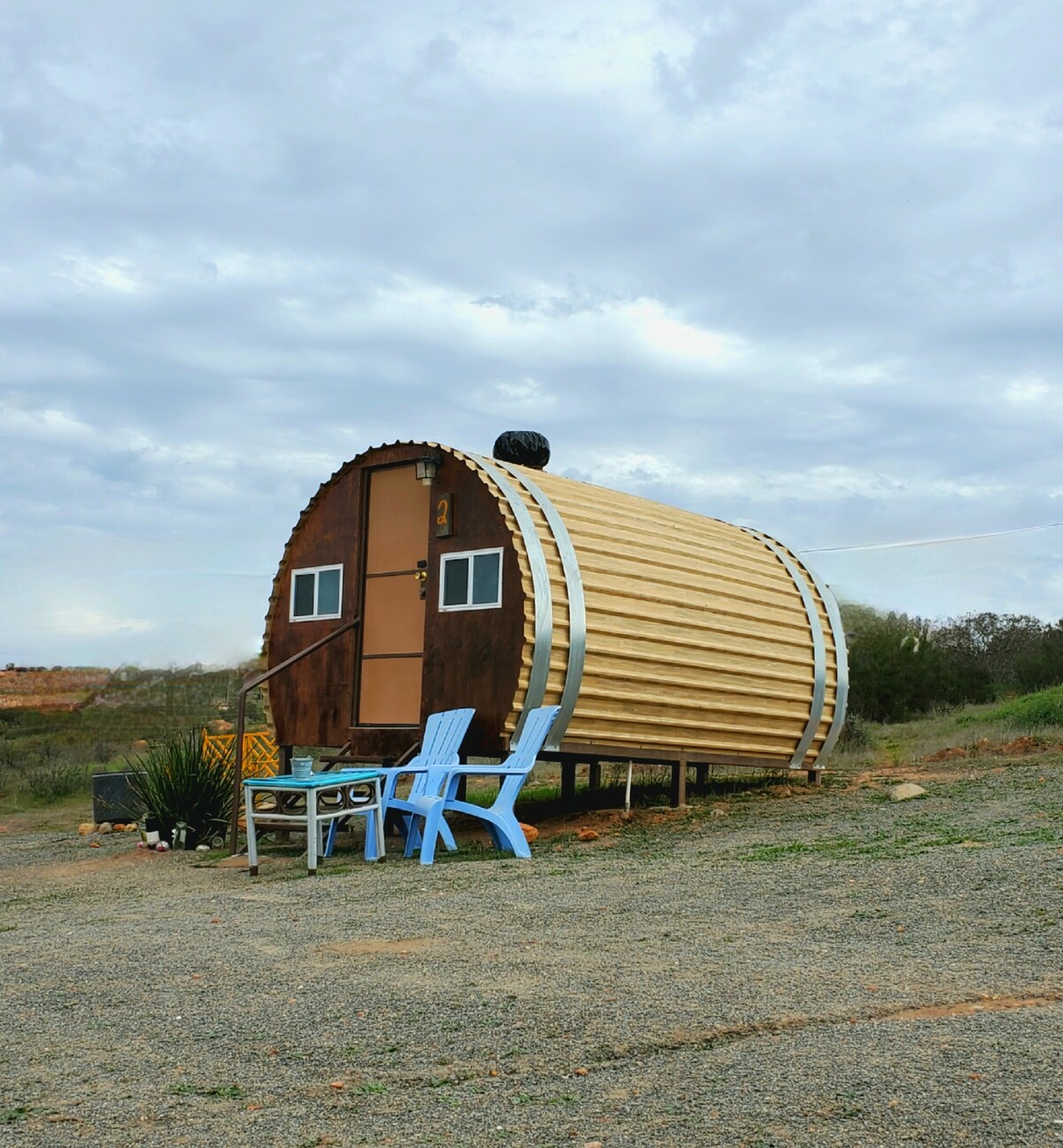 Esta es tu oportunidad de pasar la noche en una peculiar estructura para acentuar tu visita a las vinícolas de El Valle. Es una cápsula metalica pintada como madera de forma de un barril de vino. Cuenta con un tragaluz justo arriba de la cama para que puedas observar las estrellas durante la noche. Área muy segura y cerca de infinidad de puntos importantes. - Si NO está disponible, puedes buscar nuestros barrilitos #1, #3 o #4. Visita nuestra nueva estancia: La Botella de vino GIGANTE. Es ÚNICA!