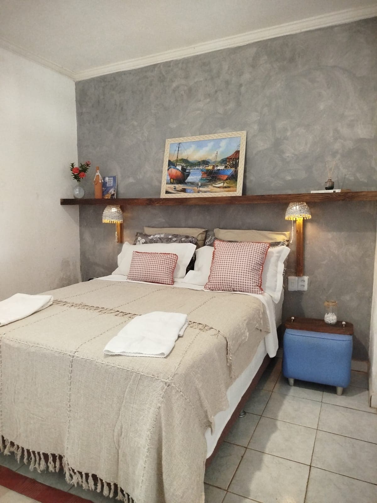 A acomodação é independente, com jardim e clima acolhedor. O espaço é arejado, confortável e pensado para oferecer tranquilidade e privacidade. Conta com cama king size, ventilador, cozinha com utensílios básicos e área externa para relaxar. É perfeito para quem busca dias de descanso, silêncio e conexão com a natureza, sem abrir mão de conforto e praticidade. Aqui o clima é leve, simples e acolhedor, perfeito para quem quer realmente desacelerar e se desconectar da correria.