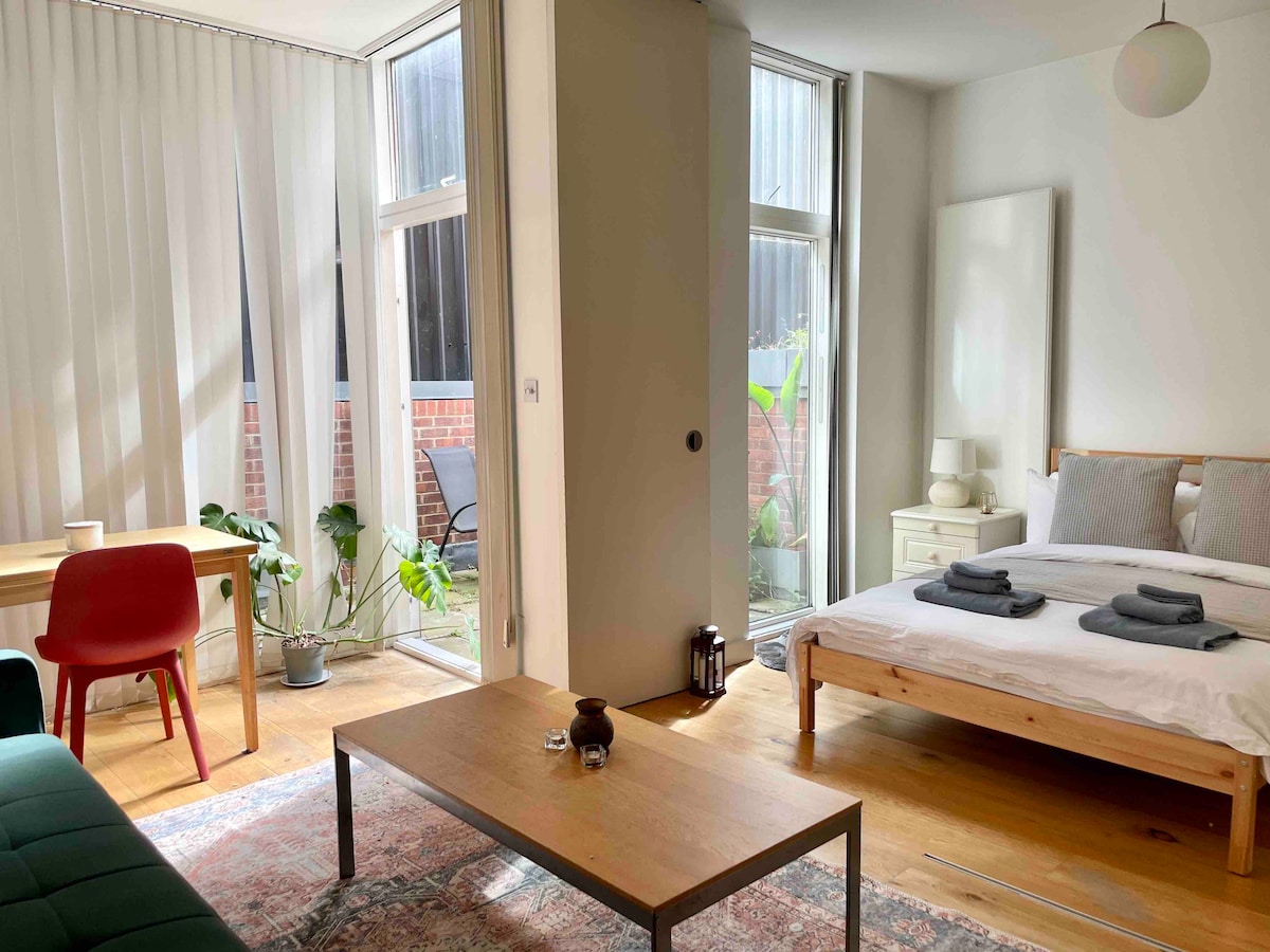• Alojamiento de 850 pies cuadrados, redecorado, con 2 dormitorios y 1 baño, literalmente a 10 pies del parque Weaver Fields. Planta baja subterránea. • Camas de espuma: 1 súper king (180 cm de ancho) una king (150 de ancho) y 4 colchones de piso • Limpieza profesional con sábanas de 800 tc, toallas suaves y todos los servicios imaginables. • Wifi (110 Mbps), televisores inteligentes, secadores de pelo, ventilador Dyson, lavadora, secadora. • Metro: Bethnal Green (1 minuto a pie), Whitechapel (8 minutos). • Apto para niños con cuna de viaje y silla alta. • No hay ascensor y hay un pequeño tramo de escaleras hasta el apartamento.