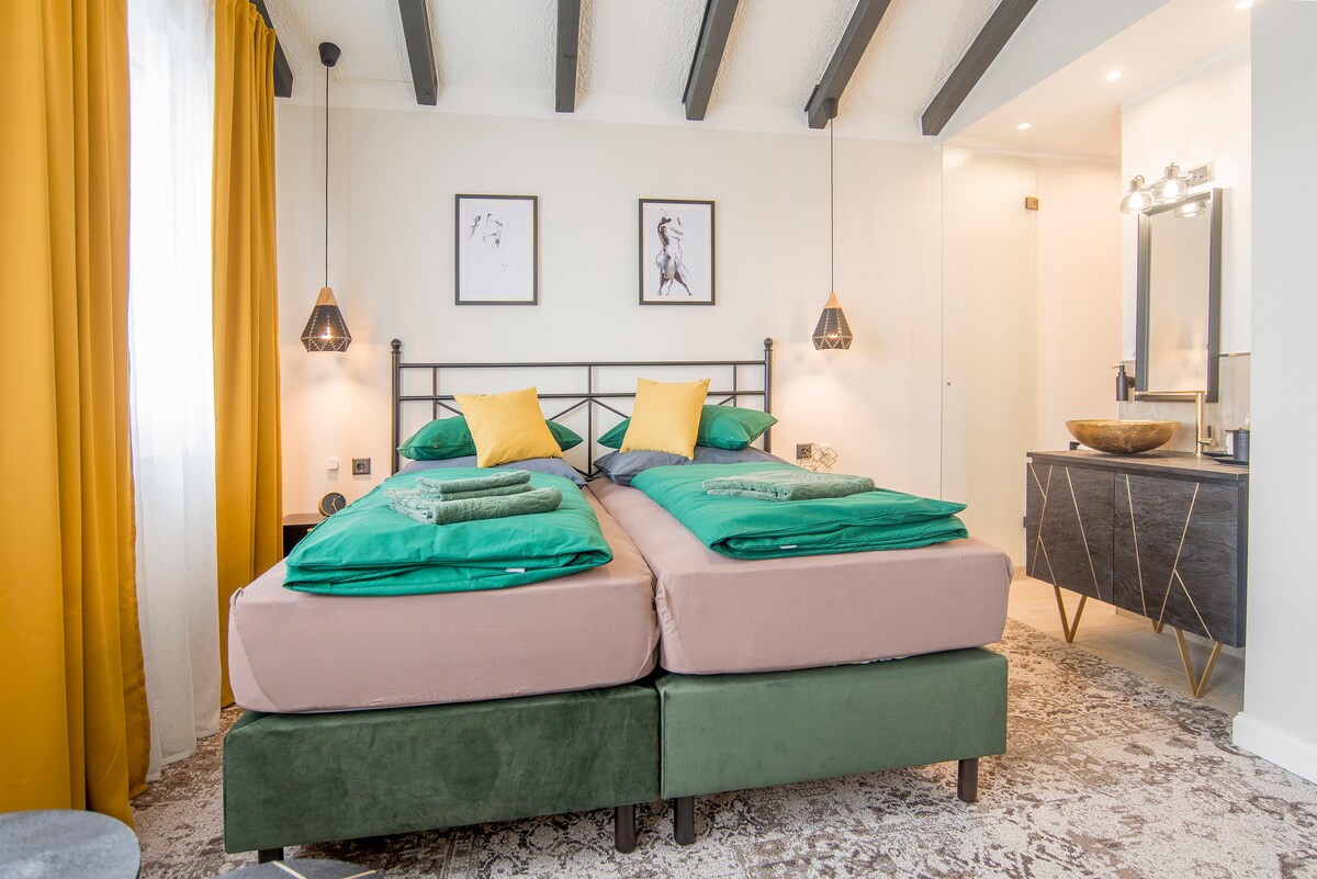 ¡Te damos la bienvenida a tu hogar temporal lejos de casa! Nuestro departamento amueblado con cariño está en Erkrath-Hochdahl, cerca de la estación de S-Bahn. En 15 minutos puedes llegar desde aquí a la estación principal de trenes de Düsseldorf. 🛏️ ¿Qué podés esperar? • 2 dormitorios, cada uno con una cama de 140 x 200 cm y un televisor inteligente con acceso a Netflix (un televisor es móvil y se puede trasladar a otros lugares). • Cocina bien equipada con estufa, nevera, cafetera, etc. • Sala de estar/comedor pequeño. • Baño con ducha, toallas, secador de pelo y artículos de emergencia.