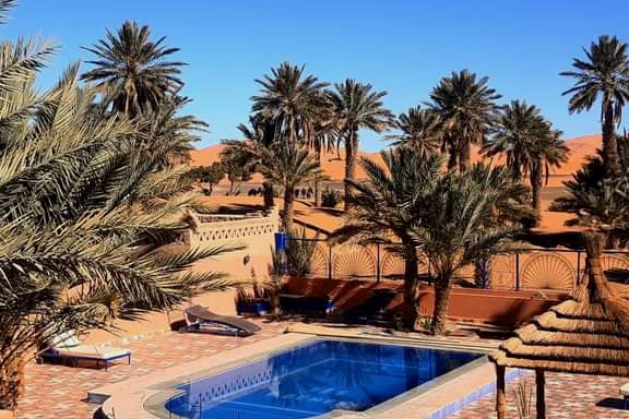 Alójate en el hotel situado en el centro a unos 500 metros, y a 10 metros de las dunas. Tiene una habitación privada decorada con equipos tradicionales, tiene una piscina, las habitaciones tienen ducha y aseo, televisión, aire acondicionado, minisalón, toallas... El hotel organiza muchas actividades en el desierto, como paseos en camello, excursiones en 4x4, pernoctación en el campamento del desierto, sandboarding y muchas más que puedes hacer si estás interesado con el mejor precio.