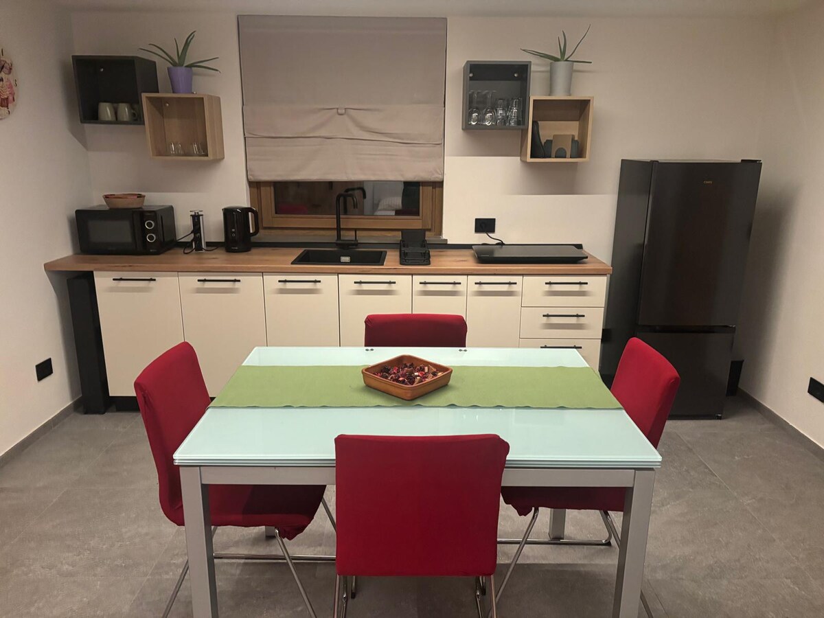 Nuestro apartamento de dos habitaciones se encuentra en una casa con jardín en una ubicación tranquila y panorámica. Se disfruta de una excelente vista de San Vicente y del valle central. Las termas de San Vicente están a unos 200 metros, mientras que el centro de la ciudad está a solo 10 minutos a pie. En las inmediaciones también hay senderos para excursiones en plena naturaleza. El apartamento de dos habitaciones se encuentra en la planta baja, debajo de otra unidad en alquiler. Nota: el impuesto turístico debe abonarse en efectivo en el momento del registro.