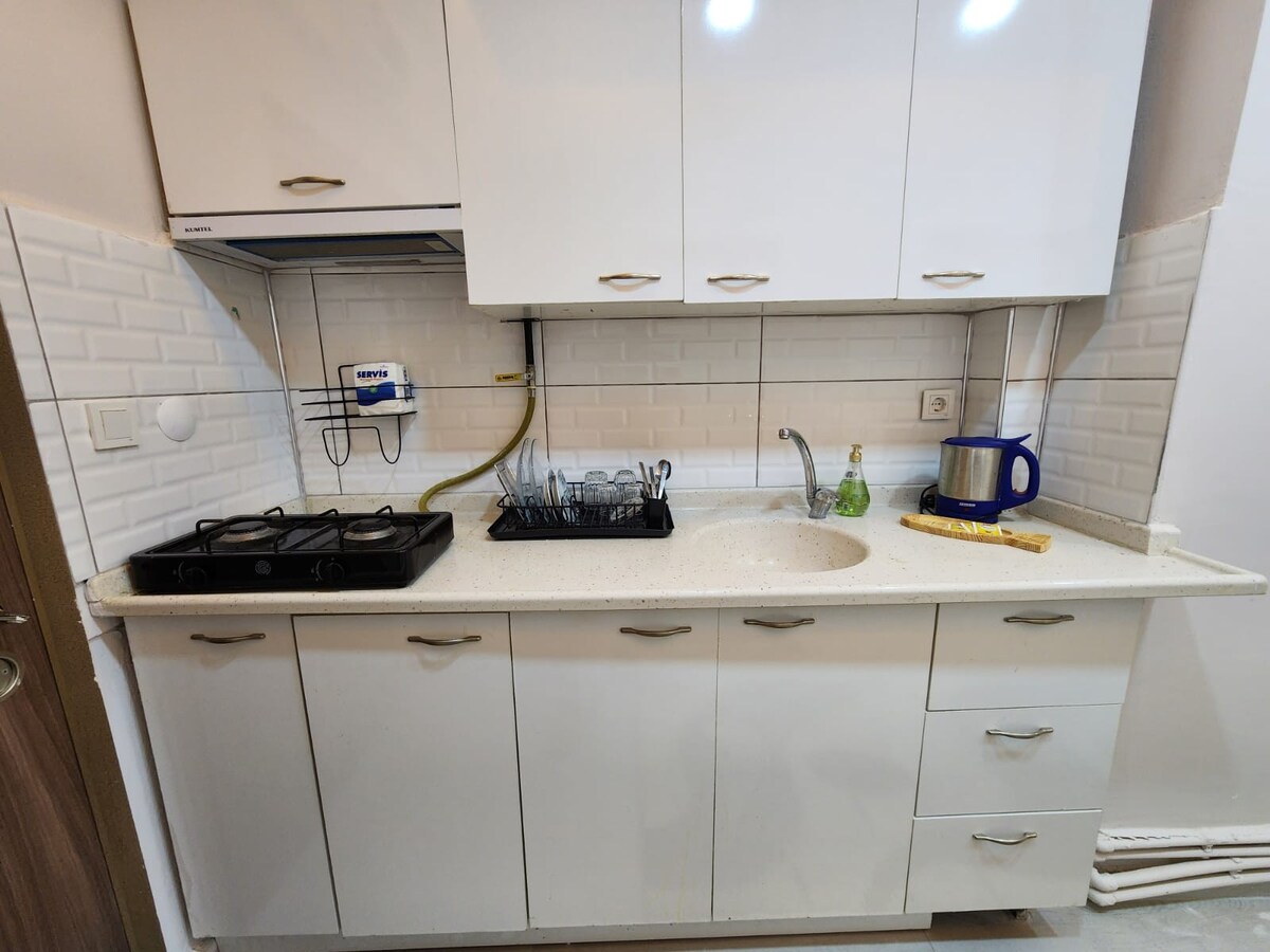 Un elegante apartamento de 1+1, de aproximadamente 35 m² de tamaño, en el corazón de Eskişehir. Ideal para relajarse con un baño moderno, cocina totalmente equipada, mininevera, TV D-Smart. Las sábanas adicionales para la tercera persona están listas en el armario. Un alojamiento tranquilo cerca del centro te espera.