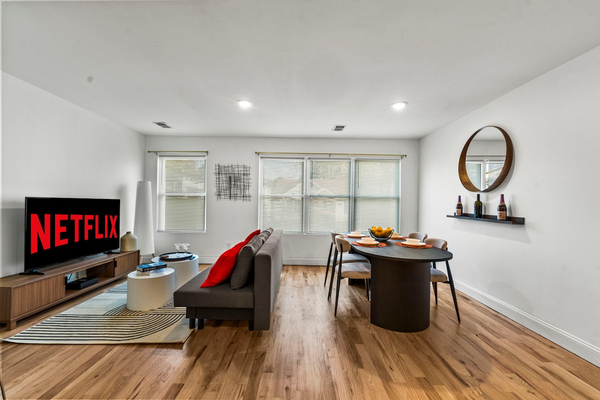 ¡Te damos la bienvenida a tu NUEVO lujoso refugio de 3 dormitorios y 2 baños ubicado en el corazón de Newark! ¡Esta belleza moderna se encuentra cerca de EWR y Nueva York para los viajeros! ¡Estamos ubicados a 10 minutos del aeropuerto de Newark, NJPAC/Prudential Center, Newark Penn Station, American Dream Mall y a 22 minutos de la ciudad de Nueva York en tren! ¡WIFI rápido, TV inteligente, café y desayuno incluidos! Este elegante refugio es ideal para familias, grupos de amigos, viajeros de negocios y cualquier persona que busque experimentar la vibrante energía de Nueva York.