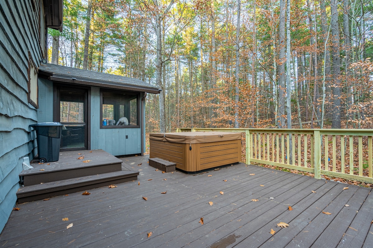 Cabaña de madera en Wilmington con nueva bañera de hidromasaje junto a la pista de esquí.