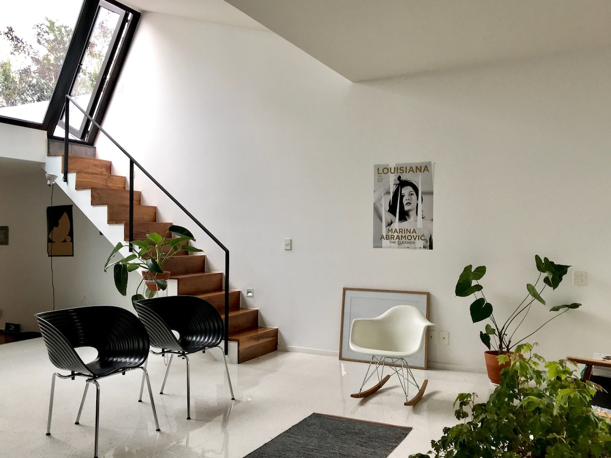 Our beautiful apartment floats over the dense trees of La Condesa´s most beautiful and quiet street, in a stylish modernist building designed by Javier Sanchez, one of the best and famous architects of Mexico. The sunlight floods the apartment the whole day, and you can enjoy the sunset on our wonderful private terrace. Grab a book, or a drink or both and enjoy the afternoon sun on our comfortable Acapulco lounge chairs surrounded by greenery.