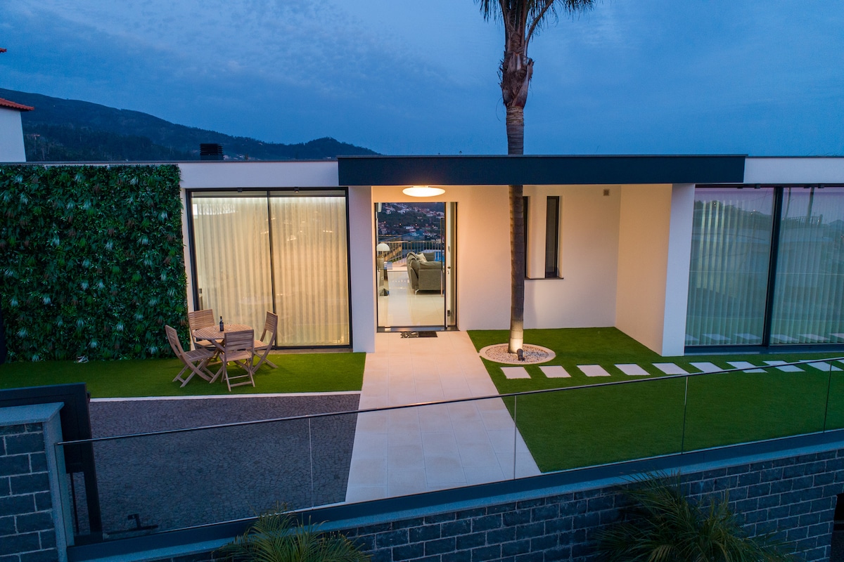 Casa elegante e acolhedora, com vistas incríveis de tirar o fôlego e piscina, perfeita para momentos de descanso e exclusividade. Os espaços amplos e luminosos, as camas confortáveis e os detalhes pensados ao pormenor criam um ambiente relaxante para famílias ou grupos. Dispõe de estacionamento privado gratuito, garantindo total comodidade. A piscina e as vistas deslumbrantes tornam esta casa o cenário ideal para férias memoráveis. Piscina Climatizada a pedido do cliente com custo extra.