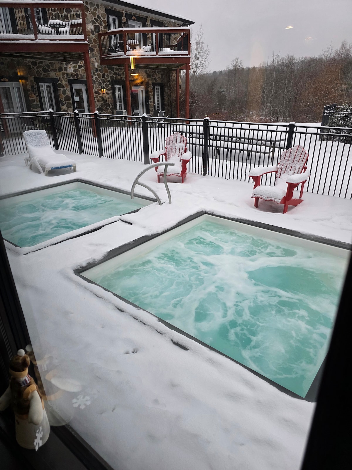 In addition to the soothing hot tub that stays open all winter, the guest suite now includes a beautiful electric fireplace. It keeps you perfectly warm while casting a romantic, log-cabin glow across the room. Curl up in bed beside the flickering firelight, put on your favourite movie, and settle in for a quiet, cozy night in. The Eastern Townships’ Christmas markets and holiday concerts have begun, and the whole region is glowing with that magical pre-season charm.