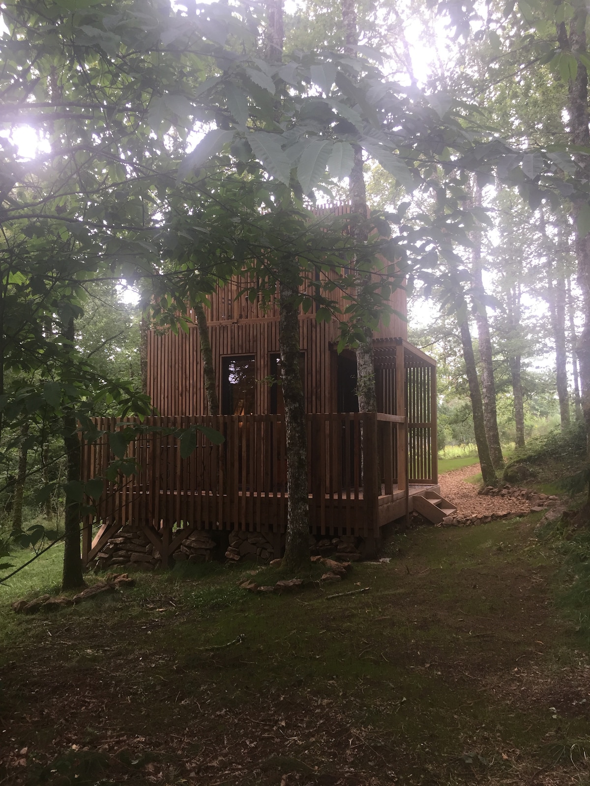 ¿Ola de calor? Venga a disfrutar de la frescura del bosque. Tiene 2000 m², independiente, sin vecinos. Cama para 2 personas + 1 niño con mesa retráctil. Alojamiento artesanal climatizado, aislado, acogedor y confortable. Café, té disponible. Desayuno y/o comida bajo petición. Ducha interior. Inodoros secos. Se proporcionan sábanas y toallas. Estacionamiento privado a 20 m del alojamiento. Terreno cerrado.