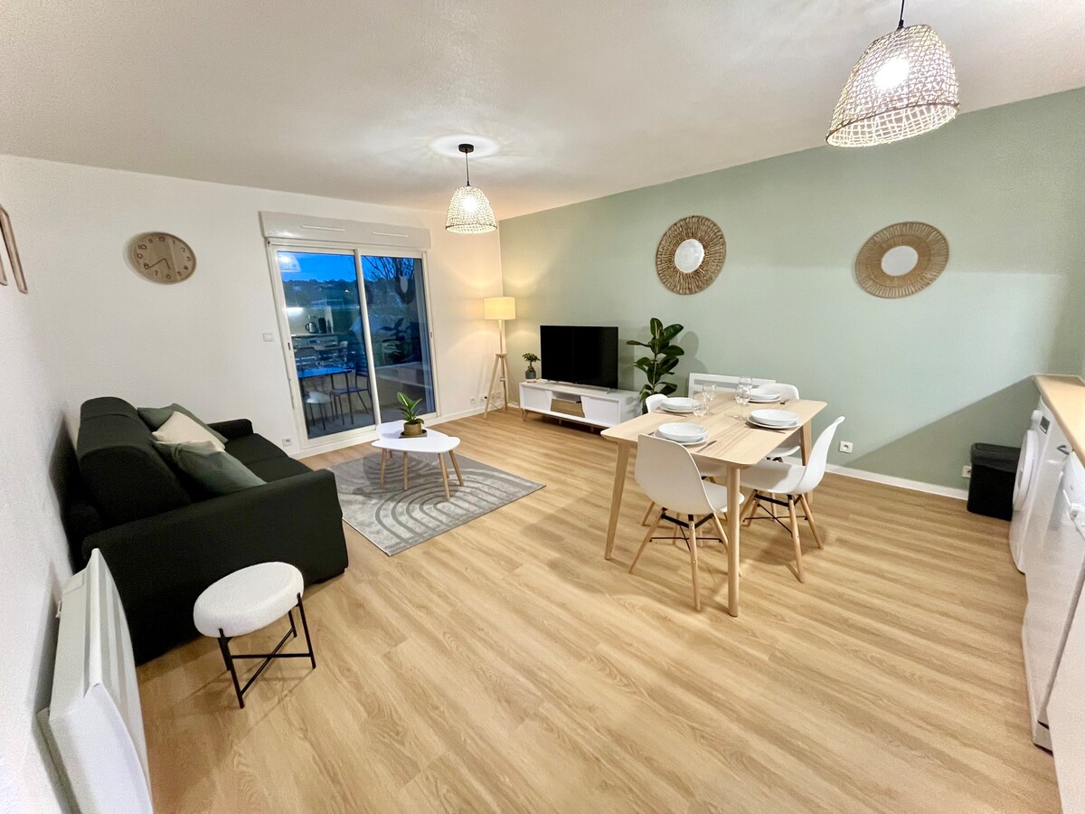 Encantadora residencia tranquila en Boulazac (que toca Périgueux) con balcón y aparcamiento Situado cerca de todos los servicios y a 8 min en coche de Périgueux Agradable Apartamento T2 de 48 m2 situado en una residencia segura con su plaza de aparcamiento Hermosa sala de estar con una cocina equipada que da a un balcón para disfrutar del exterior Sofá de la sala de estar convertible, cama de 140 x 190 (colchón de calidad) Una habitación cómoda, cama 160 x 200 Cuarto de baño con bañera Wifi Acceso autónomo.