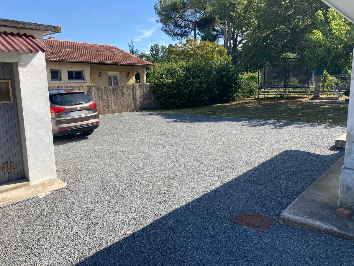 Profitez d'une dépendance calme, totalement autonome, toute équipée et climatisée à 20 mn de Bordeaux centre en tramway et de la gare de Bordeaux St Jean en 40 mn. La station est situé à 150 m du logement . L'aéroport de Mérignac et à 20 mn en voiture. Le quartier est calme, le parking gratuit et aisé. Le logement est conçu pour accueillir 2 adultes et 2 enfants, et non 4 adultes.