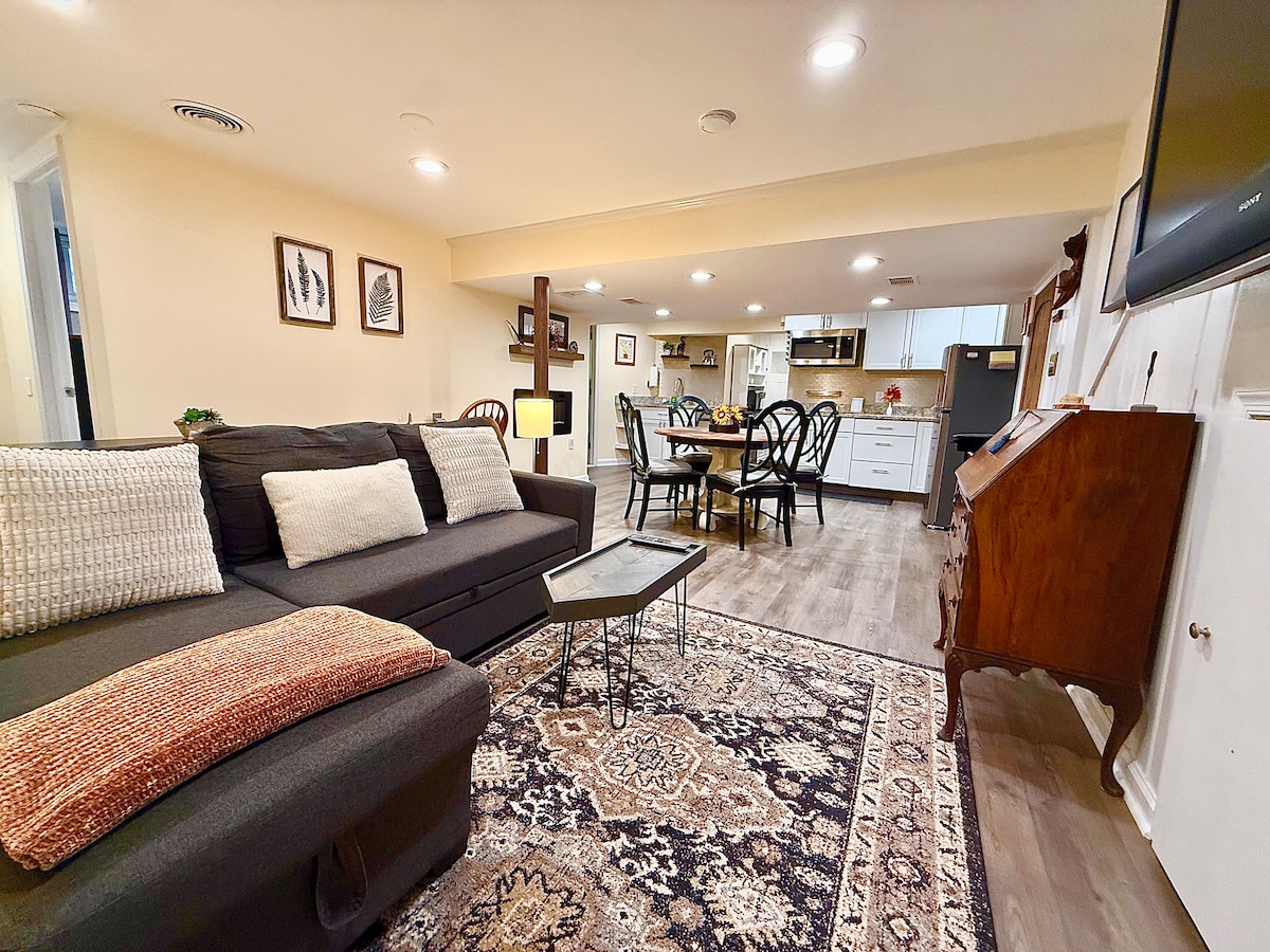 ¡Vive creativamente en esta vibrante casa adosada de 2 dormitorios y 1,5 baños! A pocos pasos del puerto de Potomac, estarás cerca de un centro comercial, cine, centro comercial, bares y restaurantes. Diseñada para creativos, la casa cuenta con un estudio de música con dos habitaciones separadas para la producción y grabación de música. Sal a un patio privado, con parrilla para barbacoa y cómodos muebles. Los niveles principal y superior están incluidos. El sótano, que incluye otro baño completo, se puede agregar a tu estadía.