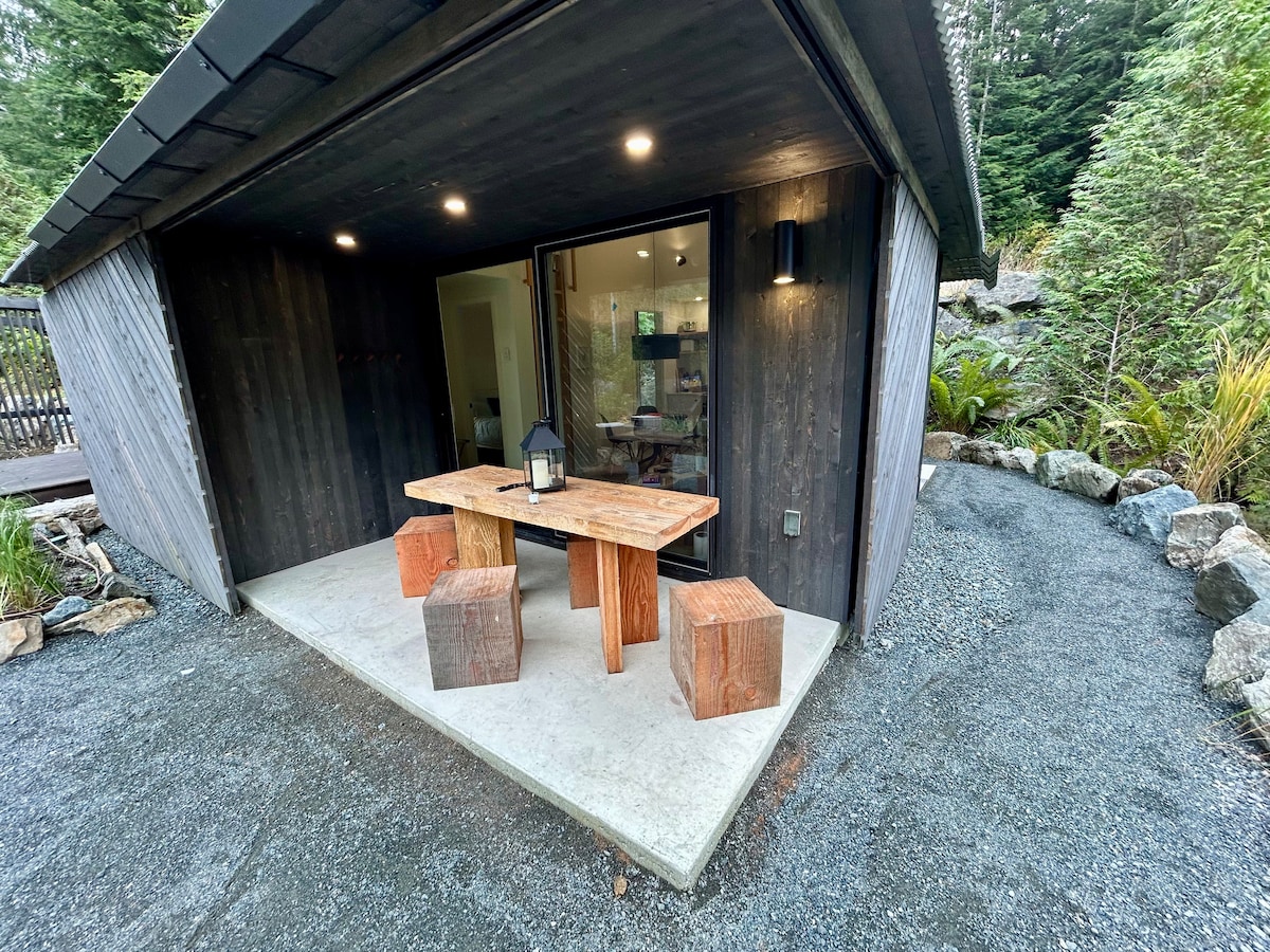 Una suite y sauna perfectas junto al mar, escondidas entre árboles y helechos al final de un tranquilo callejón sin salida. El diseño de la suite de contenedores de envío de nueva construcción es moderno, ligero, ordenado, limpio y cuenta con una sauna/sala cálida. Una estancia ideal para uno o dos huéspedes. Quédate y relájate, o camina por el sendero a través del bosque que te llevará hasta el océano, donde podrás ver las olas, las puestas de sol o continuar caminando hasta China Beach. La ubicación es tranquila, segura y cómoda.