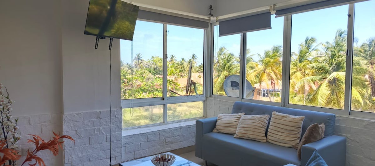 ¡Sin comisiones de Airbnb: lo que ves es lo que pagas! 🌊Relájate con vistas al mar! Disfruta de 2 habitaciones: una con cama King y otra con litera y una cama individual tipo gaveta. Cuenta con 2 baños con agua caliente, cocina equipada, Wi-Fi, TV y 3 aires acondicionados. El conjunto ofrece piscina, parrillas, acceso a la playa y estacionamiento privado. El conjunto cerrado es seguro, con planta eléctrica los fines de semana y feriados. 📅 Reserva y vive una escapada inolvidable! 💙