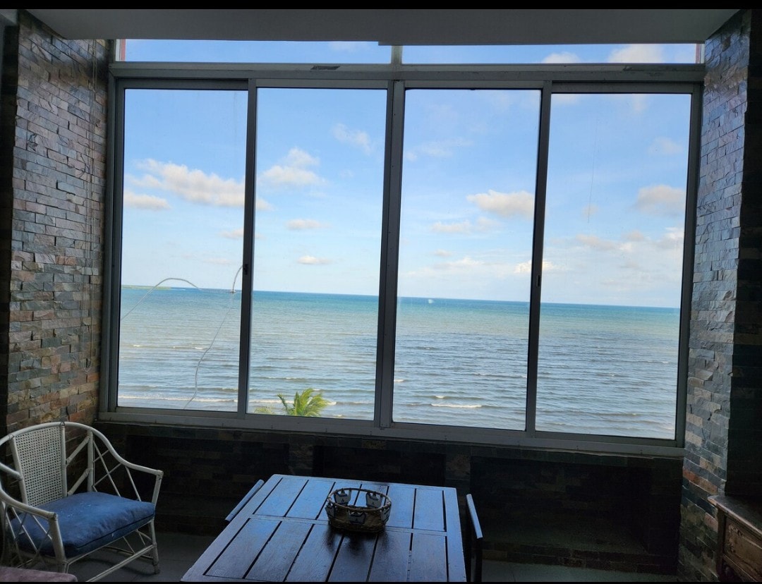 Hermoso Penthouse Vacacional frente al Mar para 8 pers. * 1 Habitacion con 2 camas matrimoniales *Sala con 2 sofacamas matrimoniales. * 3 baños completos * Desayunadero *Nevera * 1 puesto estac techado. * Ventana panorámica con vista al mar. * 2 Hamacas * Terreza privada ✅ Utensilios de cocina. Airfare ✅Cocina electrica , otra cocina con Bombonas de Gas ✅lencería. ✅Wifi ✅1 Smart TV pantalla plana El Conjunto tiene piscina y parrilla *Penthouse Equipado.