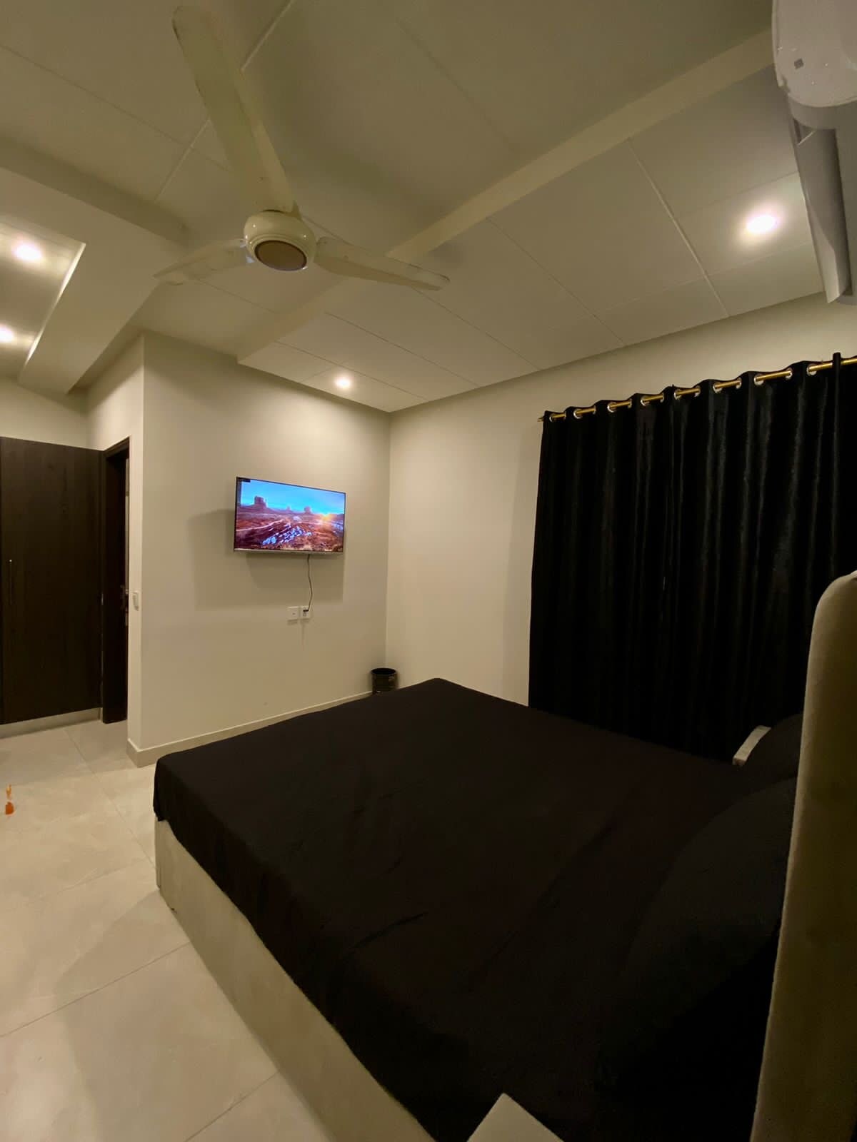Entra en tu espacio privado donde la elegancia se encuentra con la calma. Este departamento cuidadosamente diseñado cuenta con una decoración minimalista, iluminación cálida y acogedores interiores verdes. Relájate en los cómodos sofás, disfruta de tus programas favoritos en un televisor de pantalla plana o relájate en el dormitorio suave y acogedor después de un largo día. Perfecto para viajeros solos, parejas, familias o profesionales que buscan paz y estilo en el corazón de Islamabad. En resumen, este lugar único tiene un estilo propio.