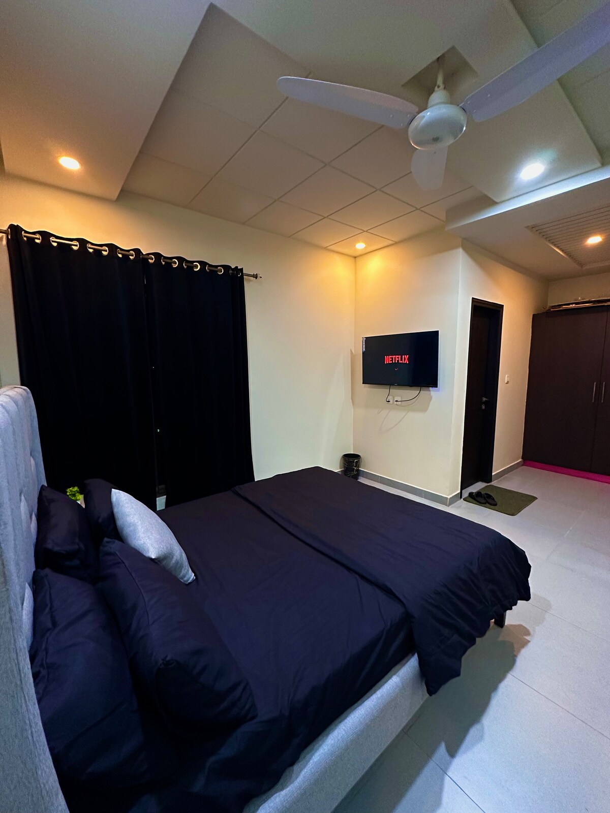 Entra en tu espacio privado donde la elegancia se encuentra con la calma. Este departamento cuidadosamente diseñado cuenta con una decoración minimalista, iluminación cálida y acogedores interiores verdes. Relájate en los cómodos sofás, disfruta de tus programas favoritos en un televisor de pantalla plana o relájate en el dormitorio suave y acogedor después de un largo día. Perfecto para viajeros solos, parejas, familias o profesionales que buscan paz y estilo en el corazón de Islamabad. En resumen, este lugar único tiene un estilo propio.
