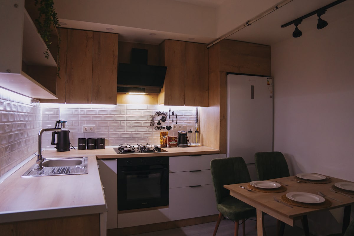 Este espacioso estudio ofrece una cama doble y una amplia sala de estar. La sala de estar tiene un sofá grande que se puede utilizar como cama para el huésped adicional. El estudio ofrece una pequeña cocina privada y un baño privado con jacuzzi de tamaño medio (140 cm *80 cm). Hay un portero las 24 horas y una vez cada 2 días de servicio a la habitación. El baño turco debe reservarse a la llegada para la entrada gratuita. Además, mis huéspedes tendrán un descuento del %10 en el restaurante. Indica que eres huésped de Yusuf:)