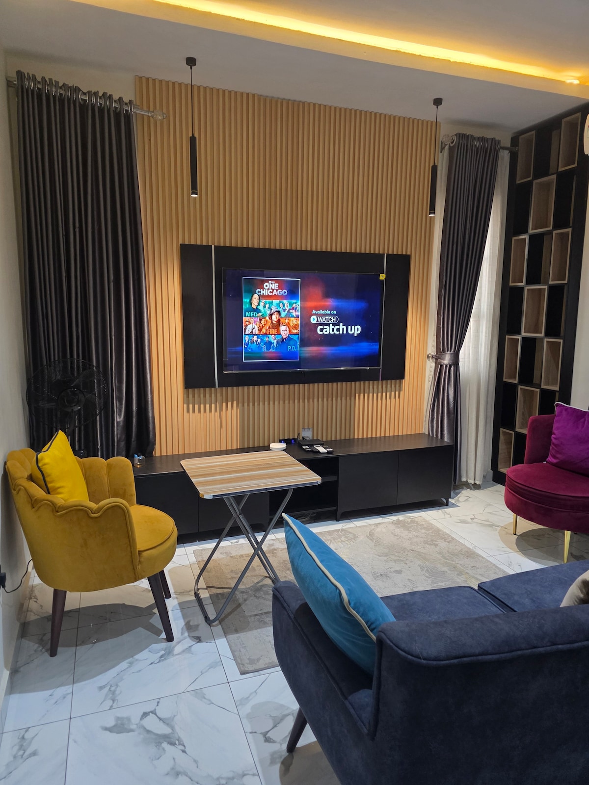 Puerta con código Balcones privados Lavarropas Acogedor 3 dormitorios 5 aparatos de aire acondicionado Espacio de trabajo dedicado Sala de estar amueblada Cocina totalmente equipada 4 inodoros y 3 baños Starlink y wifi de fibra óptica Luz las 24 horas, los 7 días de la semana (solar | Inversor | Gen) Si no hay red eléctrica: gen: de 6:00 a. m. a 8:00 a. m., de 6:00 p. m. a 12:00 a. m., pero el inversor siempre está encendido. Proximidad a mercados, clubes nocturnos, restaurantes y tiendas Ropa de cama y toallas limpias y limpias Barrio sereno, seguro y hermoso Televisor inteligente de 85, 65, 50, 50 pulgadas (Prime, Netflix).
