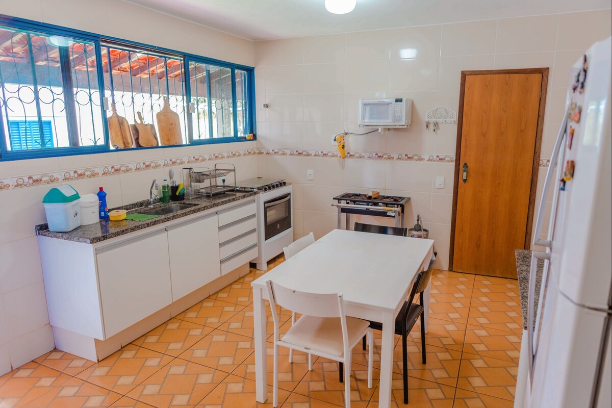 Alojamiento acogedor en condominio cerrado rodeado de naturaleza, con área de ocio completa, que incluye piscina, barbacoa, estufa de leña, horno de pizza, cocina completa con utensilios. Hay 2 habitaciones con capacidad para 6 personas con baño en suite y 2 baños que dan servicio al área de ocio (Incluye ropa de cama). Es ideal para reunir a la familia que está de paso, visitando la ciudad o que quiere escapar de la rutina. Relájese tomando hermosas fotos y caminando (acceso a la granja taboquinha).