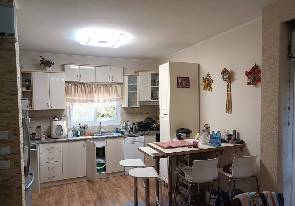 House & garden, one bedrooms for couple+protected room (MAMAD), and tourists traveling to the Dead Sea, Masada-25min, Ein Gedi, Jerusalem, Eilat. A place for romantic meetings or for a business trip. 80 min-Ben Gurion Airport. Free private parking. The house has air conditioning, a bedroom with a toilet and shower, another bathroom with a toilet,a living room, a kitchen with all utensils. In the garden there is a closed terrace, chairs in the shade of trees and roses...