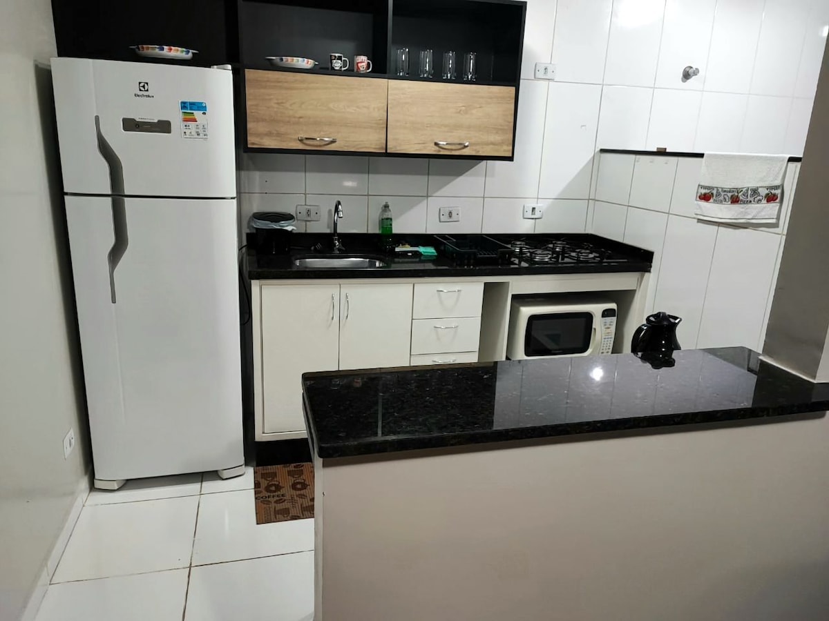 Estudio ubicado en la región central de Campo Grande. Cerca de parada de autobús, restaurantes, bares y varios tipos de comercios. Perfecto para dos personas. Aire acondicionado, wifi, televisión, cocina con nevera, microondas, hervidor eléctrico, sandwichera y utensilios de cocina perfectos para un desayuno o una comida sencilla. El apartamento está en el segundo piso sin ascensor. No hay garaje. No se permite recibir visitas en el lugar. No proporcionamos toallas de baño.