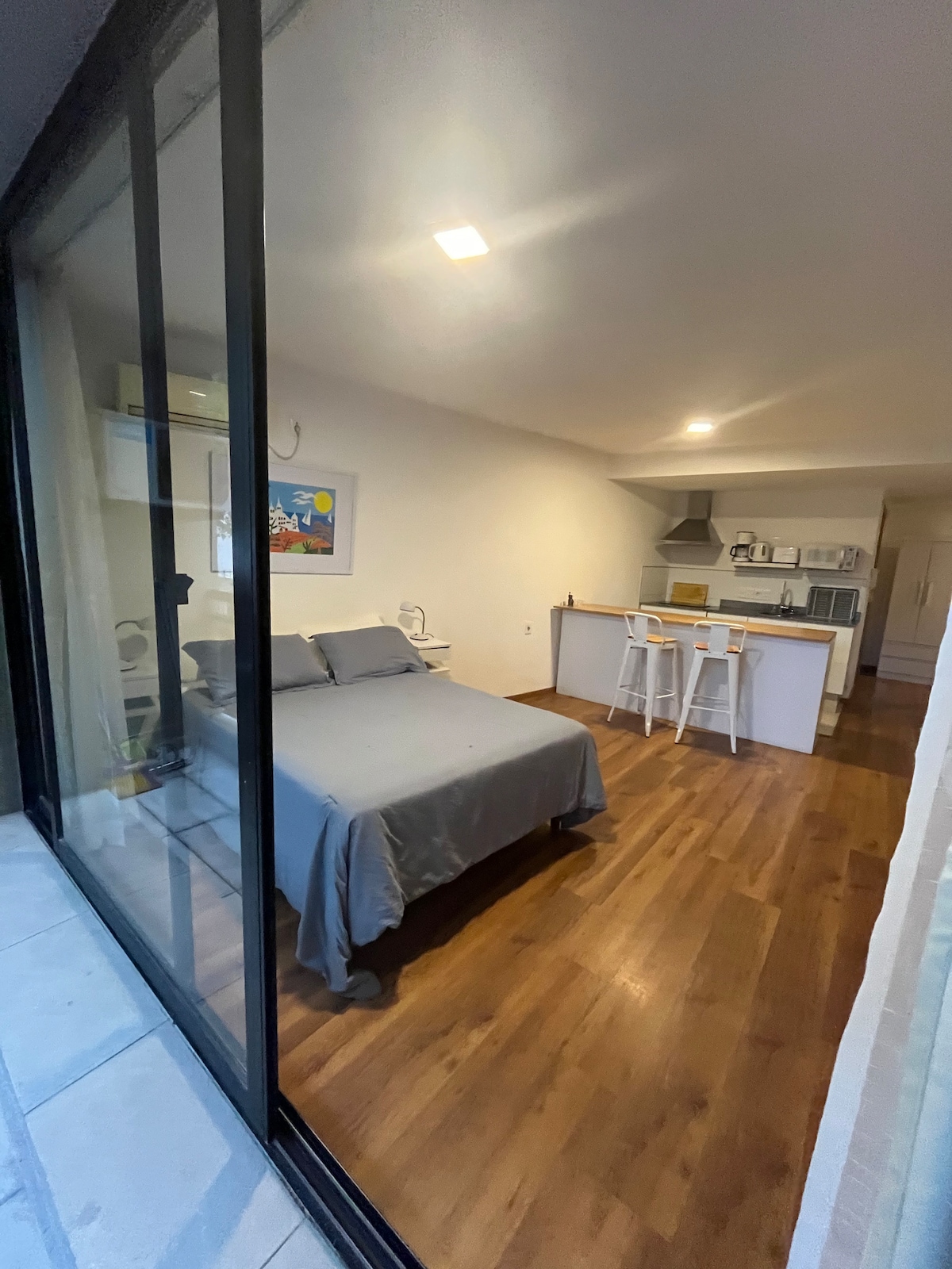 Te presentamos nuestro Loft, cerca de todo, para que puedas conocer los lugares mas icónicos tanto de día como de noche. Te ofrecemos un lugar que cuenta con todo: LIVING con cómodo sillón/cama, TvLed con apps COCINA equipada con todo, microondas y horno. DORMITORIO con sommier de resortes poquet y capa de pilow. TERRAZA con sillones y hermosa vista.