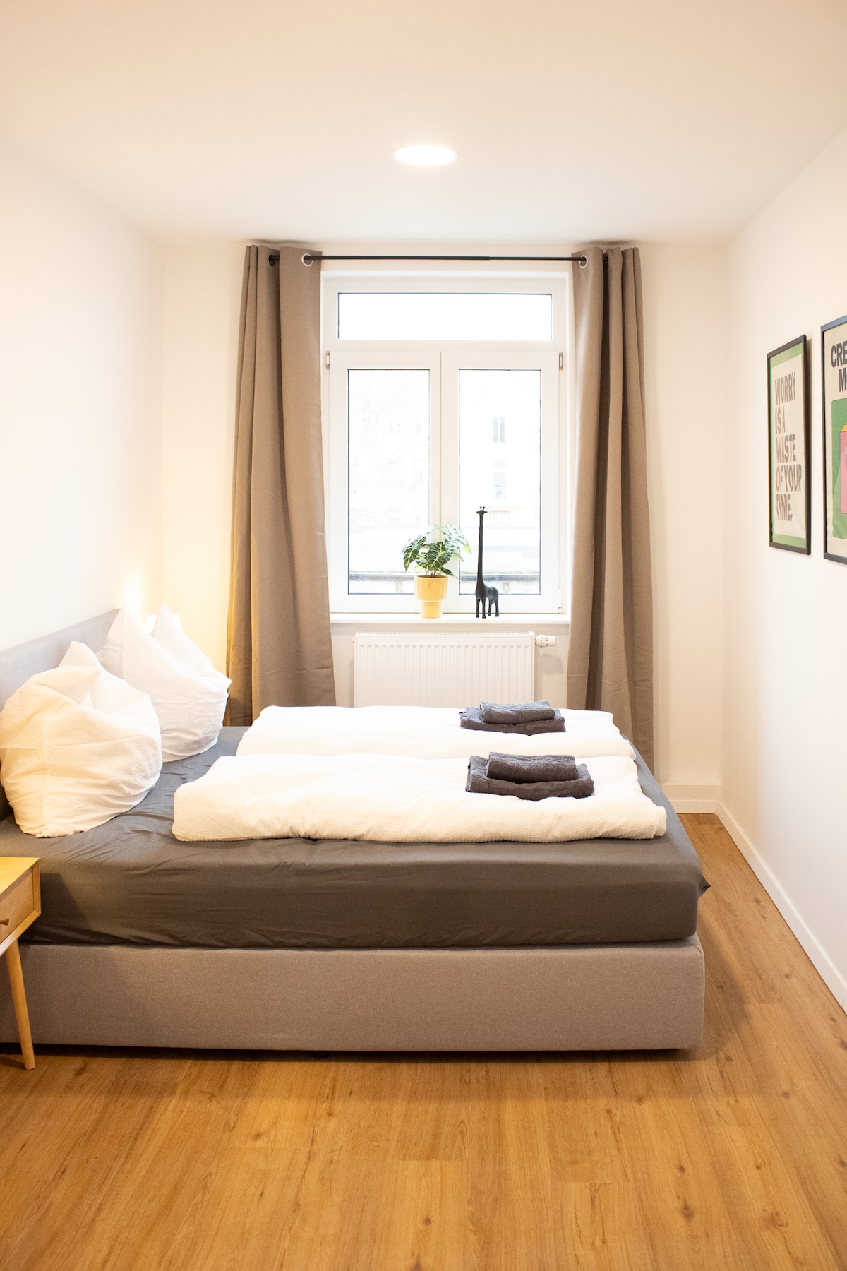 - Ubicación céntrica. - Wifi. - Messe y estación central en las inmediaciones. - Buena conexión con el transporte público. - Espacio de estacionamiento gratuito. - mobiliario moderno - Terraza grande. - Cama grande y sofá cama plegable. - Ventanas de piso a techo - Ducha grande. -Jalousies - Cocina totalmente equipada. - Cancha de fútbol y baloncesto, así como equipo deportivo y parque infantil frente a la casa. - Barrio tranquilo - Se permiten mascotas. - Calefacción por suelo radiante - Moderno departamento urbano también adecuado para estancias más largas.