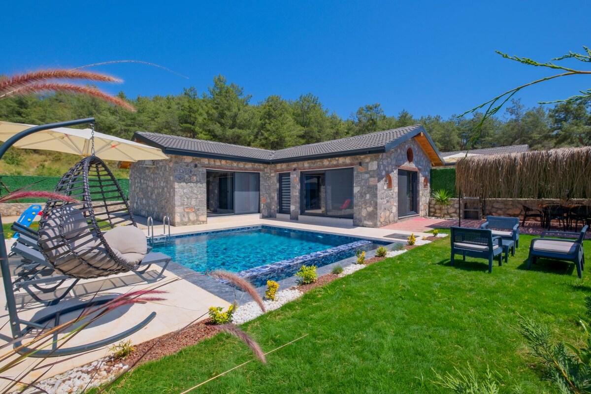 Disfruta de tus vacaciones en nuestra única villa de lujo protegida en el distrito de Fethiye de Muğla, a solo 2 km de la playa de Calis.
