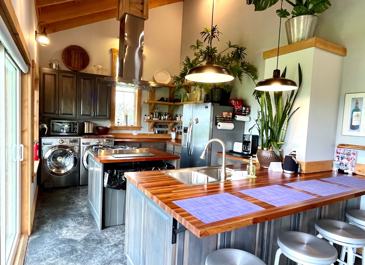 Escape to the EcoBarn—an unforgettable, immersive retreat crafted from local, organic, and reclaimed elements. Sunlight pours through glass doors in every room, blending indoors with nature. Watch golden sunsets, sip local wine on the screened lanai, and linger fireside beneath the stars. Soak in a vintage tub and savor fresh garden bounty. Slow down, reconnect, and leave fully restored. Book your escape now.