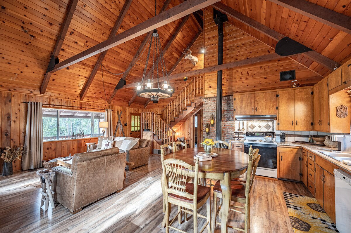 Mountain Meadow Cabin es una encantadora cabaña de cedro con comodidades modernas. Disfruta del ambiente de la hermosa chimenea de piedra abierta. Juega a las cartas o a los juegos de mesa a la luz del fuego y/o del gran candelabro de la rueda del carro. ¡Disfruta de la plataforma envolvente, observa la vida silvestre y cuenta historias junto a la chimenea al aire libre durante todo el año! Nada, pesca, haz kayak y tabla de paddle en el estanque, camina por el sendero Lewis y explora Yosemite, ¡luego relájate en la burbujeante bañera de hidromasaje! MMC... ¡TU destino de vacaciones!