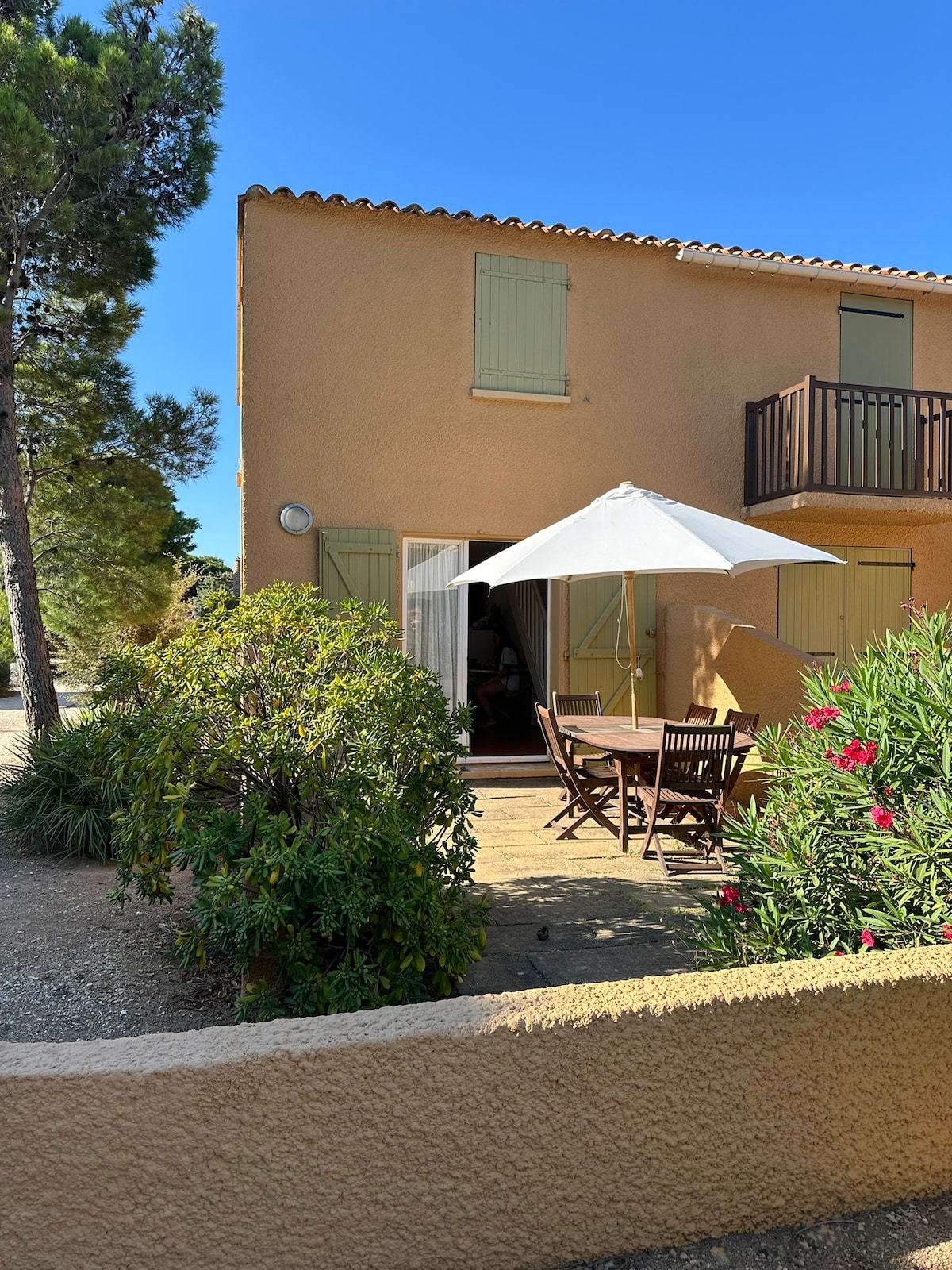 Casa típica de pueblo y su jardín en la garriga (tumbona, plancha...) en el encantador pueblo de Fitou. En la planta baja, garaje para sus bicicletas, windsurf… Arriba, gran sala de estar con doble orientación, cocina equipada, zona de estar con sofá cama de 160, zona infantil (dvd, libros, juegos), escritorio, dormitorio con cama de 160, baño contiguo. La cafetería y la panadería están a 1 minuto a pie, un gran aparcamiento gratuito a 50 metros; la playa de Leucate a 10 minutos. Un lugar tranquilo para pasar sus vacaciones.