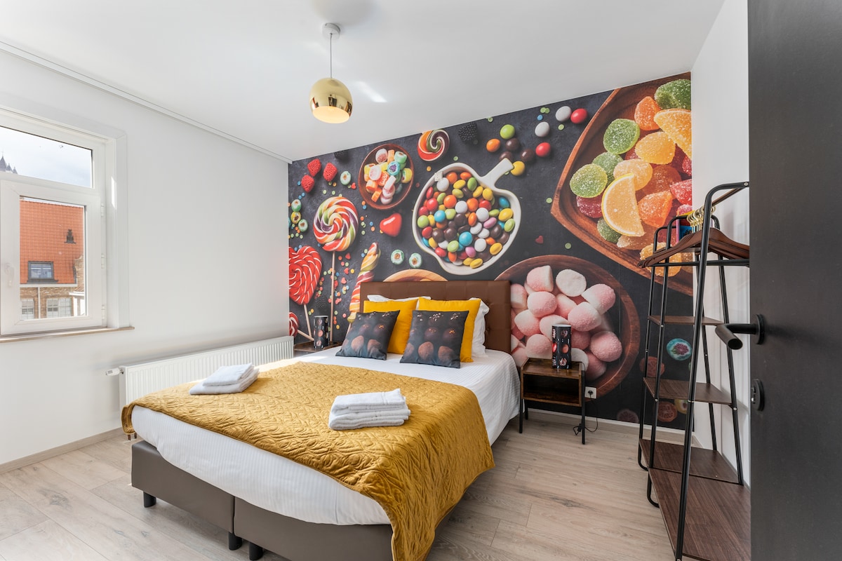 Bienvenido a un acogedor escondite de la ciudad en el corazón de Amberes, donde los cálidos interiores se encuentran con las vistas de postal del Vrijdagmarkt y todo se desarrolla justo al lado de tu puerta. - Capacidad para 2 personas | 1 dormitorio | 1 cama | 1 baño privado - Suite privada en el segundo piso de un hotel boutique. - Ventanas grandes con vistas a la plaza Vrijdagmarkt. - Wifi y espacio de trabajo dedicado en una habitación separada. - HDTV de 50 pulgadas con Chromecast y sistema de sonido. - Admite mascotas y registro de entrada automático con teclado.