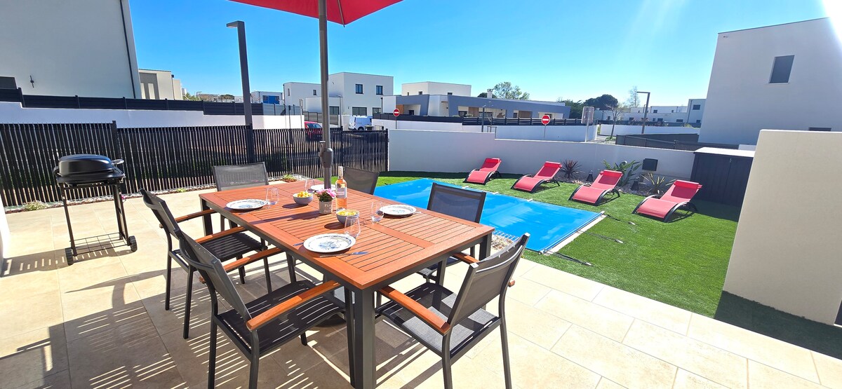 Dans une résidence paisible où il fait bon vivre, 🏠 maison mitoyenne ❄️climatisée 👥️👥️pour 4 personnes 💤 2 chambres avec lits doubles 🍽 Grande terrasse 🅿️ Place de parking privée 🏖 Accès à la plage à 450m 👣 à 10min du centre de la station balnéaire 🎡 fête foraine 🍸 restaurant et bar 🫒 marché de plein air, le plus grand du littoral audois, plus de 200 exposants Nombreuses animations juillet/août Activité nautique, randonnée, visite des vignobles, dégustation des produits locaux