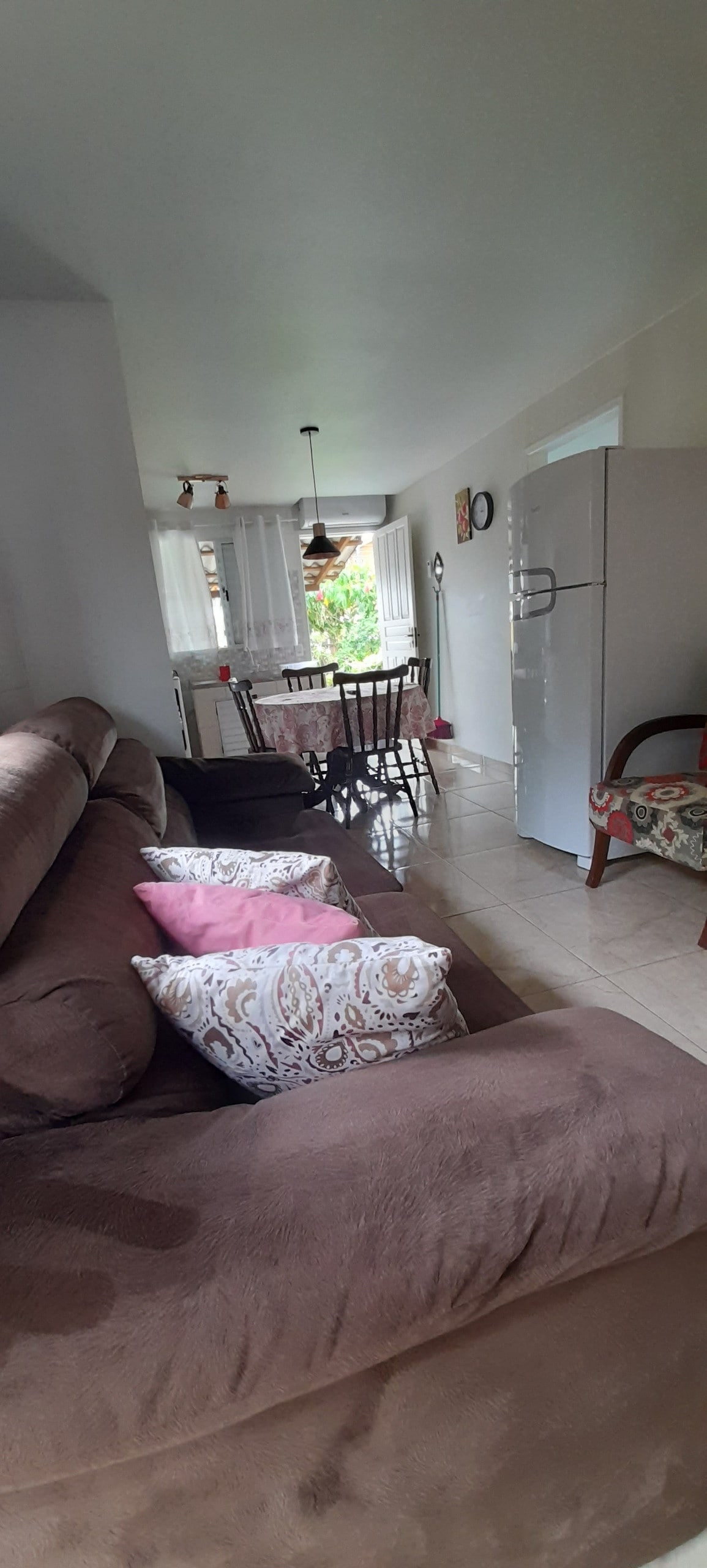 A casa possui 2 quartos (com uma parede divisória, fechados com uma cortina de voal), ventilador portátil, sofá rústico com frigobar e banheiro privativo. Não há cozinha na acomodação mas os hóspedes podem usar a cozinha compartilhada da pousada, (mostrada nas fotos), além de sala, espaço para refeições e varanda vista mar. A pousada possui 4 acomodações no total. Fica no alto do morro com linda vista mar. Localização (Praia do Siriú) - 1,3km do mar da Praia do Siriú - 9km do centro de Garopaba