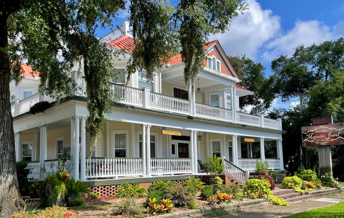 STUDIO LIBERTY APT. is on the 1st floor of the Majestic Jewel. It was originally part of the bank lobby! It has a private kitchen, bedroom with QUEEN SIZE, small area for TV viewing and a full bath. Perfect for long term or short term rentals. Opens up to the Hospitality Lobby. Additional 6 suites available for rental! TO SEE OTHER SUITES IN OUR HOME, PLEASE GO TO OUR OWNER PROFILE. Please note that the Studio is our ONLY pet friendly rental.