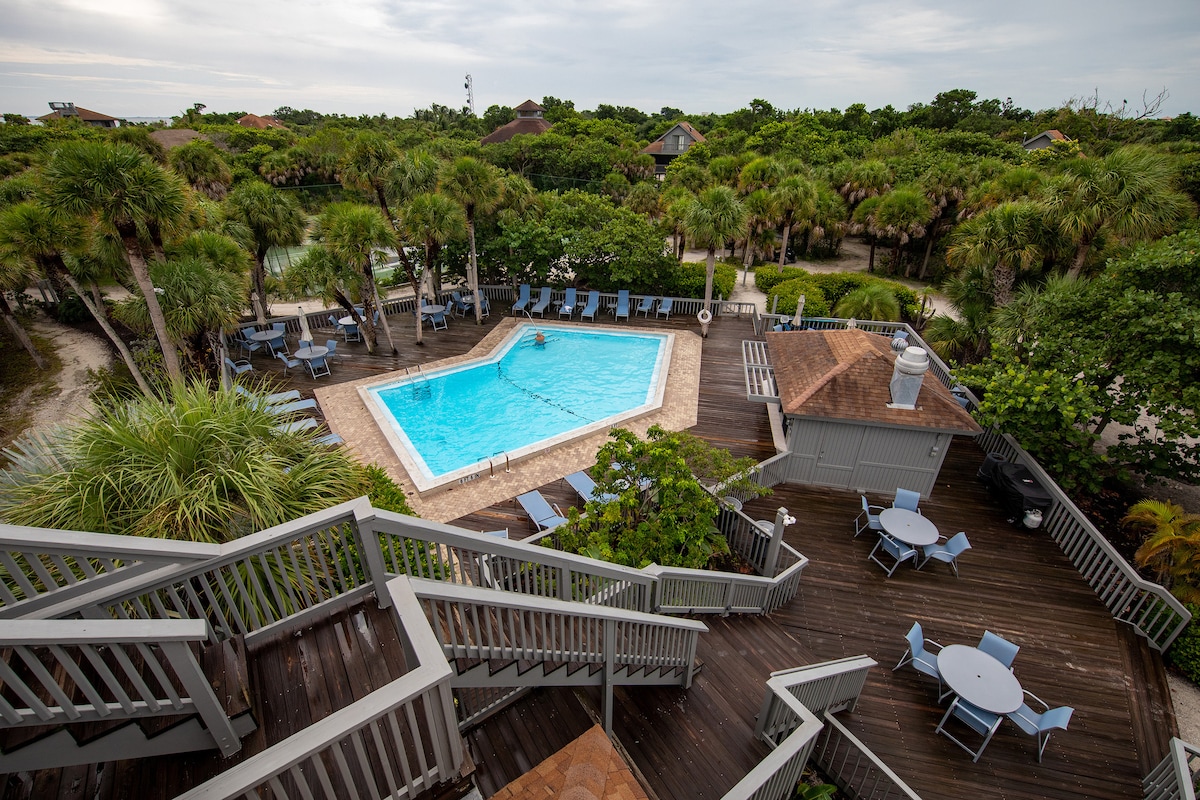 ¡Vive el sueño de la isla! Camina hasta la playa y Sharky's, luego juega todo el día: paddleboard, kayak, esnórquel, surf, pesca, bicicleta, senderismo, yoga en la playa, tenis, pickleball, baloncesto o golf. El pintoresco centro histórico (1,2 millas) ofrece boutiques, cafeterías, restaurantes elegantes, arte, teatro y mercados. El acogedor estudio cuenta con una cama tamaño queen Tommy Bahama, TV, cocina pequeña, sofá, patio trasero privado, jacuzzi de 46 chorros, piscina de 28x12, ducha al aire libre, cocina al aire libre y barbacoa. ¡Mira todas las fotos! 🌴✨