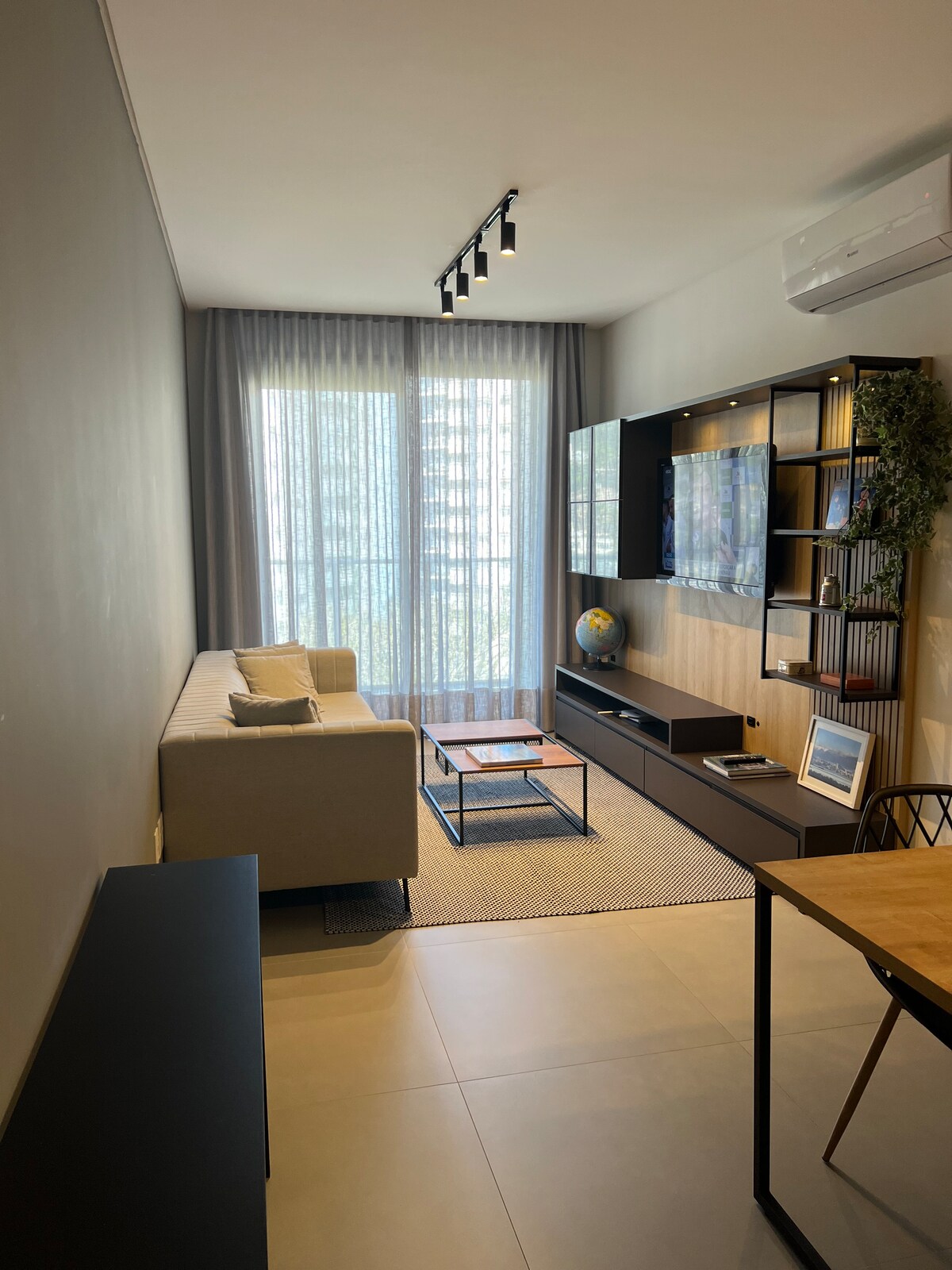 Nuevo ✨ apartamento con dormitorio con cama doble y sala de estar con sofá cama, baño completo y un gran balcón. El apartamento tiene aire acondicionado, cocina completa, lavandería con lavadora y secadora y garaje privado. 🚗 ¡Áreas comunes con gimnasio moderno💪🏻, coworking, además de una piscina abierta y climatizada! Bien ubicado, junto a Floripa Shopping🛍️, con mercados cercanos y fácil acceso a las playas. A tu familia le encantará tu estancia en este apartamento acogedor y bien ubicado 🤩