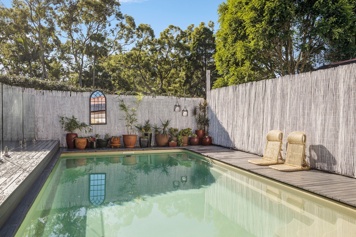 Bienvenido a «Bangalay», una moderna y acogedora suite de invitados con su propia entrada privada con cerradura, ideal para solteros o parejas. Situada entre jardines idílicos en una zona tranquila de Lighthouse Beach, se encuentra a 15 minutos a pie del icónico faro. Shelley Beach, Lighthouse Beach y las cafeterías están a 5 minutos en coche. Se puede acceder al paseo costero a 400 metros. Haz tanto como quieras. Disfruta de la zona de comedor/barbacoa/fogata al aire libre y de tu propio aparcamiento fuera de la vía pública. No se admiten mascotas.