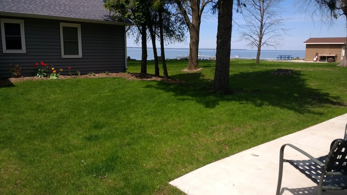 Our remodeled two bedroom Guest House is adjacent to our Cottage and offers beautiful lake views. Access to Lake Winnebago available at near by boat launches. Centrally located to many of Wisconsin's best attractions. Less than 1 hour from Milwaukee, Madison, Green Bay, Close to Oshkosh (EAA) and Elkhart Lake. Includes 2 bedrooms, with plush king and queen beds, 1 full bathroom, and a fully stocked newly remodeled kitchen. Perfect getaway for some R&R with family or friends.