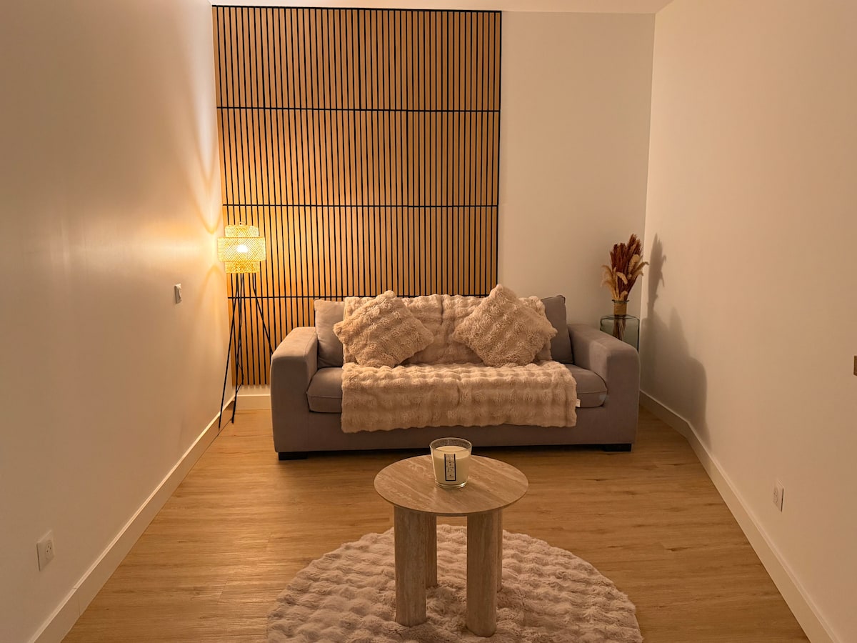 Disfrute de este elegante apartamento de 46 m2 en el 6.º piso de un edificio de lujo con ascensor. Bien situado en una zona residencial, está cerca del tranvía A. El apartamento está totalmente equipado, cálido y cómodo. Adecuado para todas las estancias con una cocina funcional. Tiene un dormitorio con una cama de 140*190 muy cómoda y un baño contiguo. Una gran sala de estar con un sofá cama Poltron y un sofá muy cómodo también. Un gran escritorio para el teletrabajo.