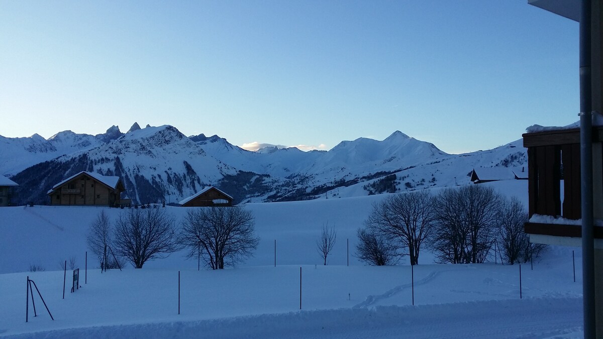 Alquiler para 4 noches mini. Vista despejada . Pleno sur para 4-5 personas en las alturas de la Toussuire. Último piso. Ascensor. Sala de estar/comedor. Zona de noche con una cama cómoda real. Cocina independiente: horno combinado, electrodomésticos fondue y raclette. Habitación con litera y 1 cama cajón. Balcón con mobiliario. Numerosos espacios de almacenamiento. Baño con bañera e inodoro separado. Local para esquiar climatizado. Todos los comercios se encuentran en las cercanías. ¡Salida de esquí a los pies, paseos, raquetas de nieve y esquí de fondo a 50 m!